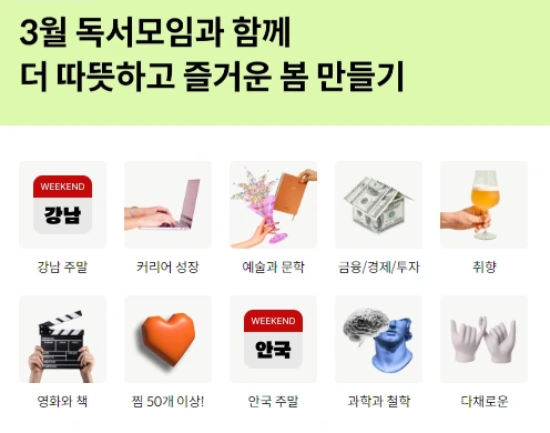 트레바리를 이번 연도에 처음 시도하게 되었는데 정말 회사원들한테 추천하고 싶은 모임이다. 내가 하고 있는 모임은 '퍼스널 브랜딩'을 주제로 총 4권의 책을 읽으면서 진행을 하는데 퍼스널 브랜딩에 관심 있는 사람들이 모이다 보니 자신의 분야에 열정을 가지고 있고, 새로운 도전을 위해 다들 모여있어 진짜 좋은 에너지와 인사이트를 많이 얻을 수 있었다.