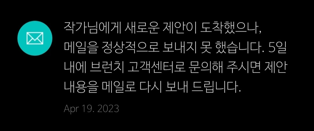 브런치 고객센터가 작가에게 정신 차리고 글 쓰라는 내용은 아니었고 정말 출판사에서 보내온 메일이었다.