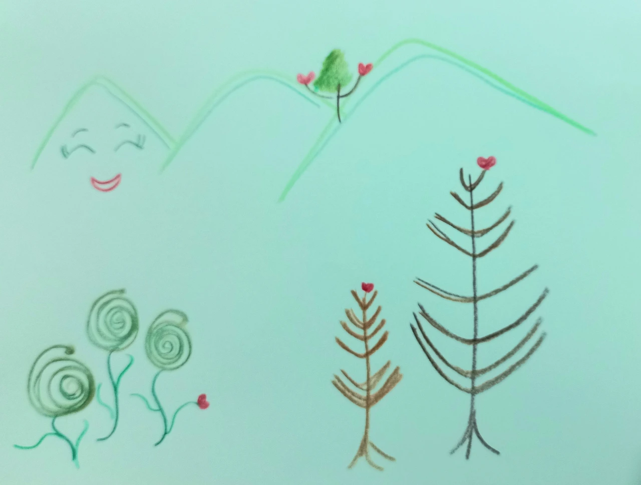 그림을 그리고 색을 칠할 때도 초록 계열의 색을 많이 씁니다.