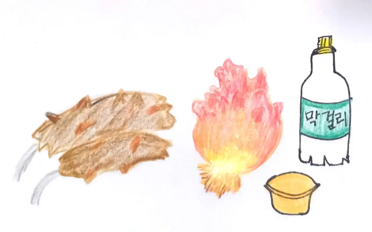 막걸리. 멍게. 해삼이 있다.