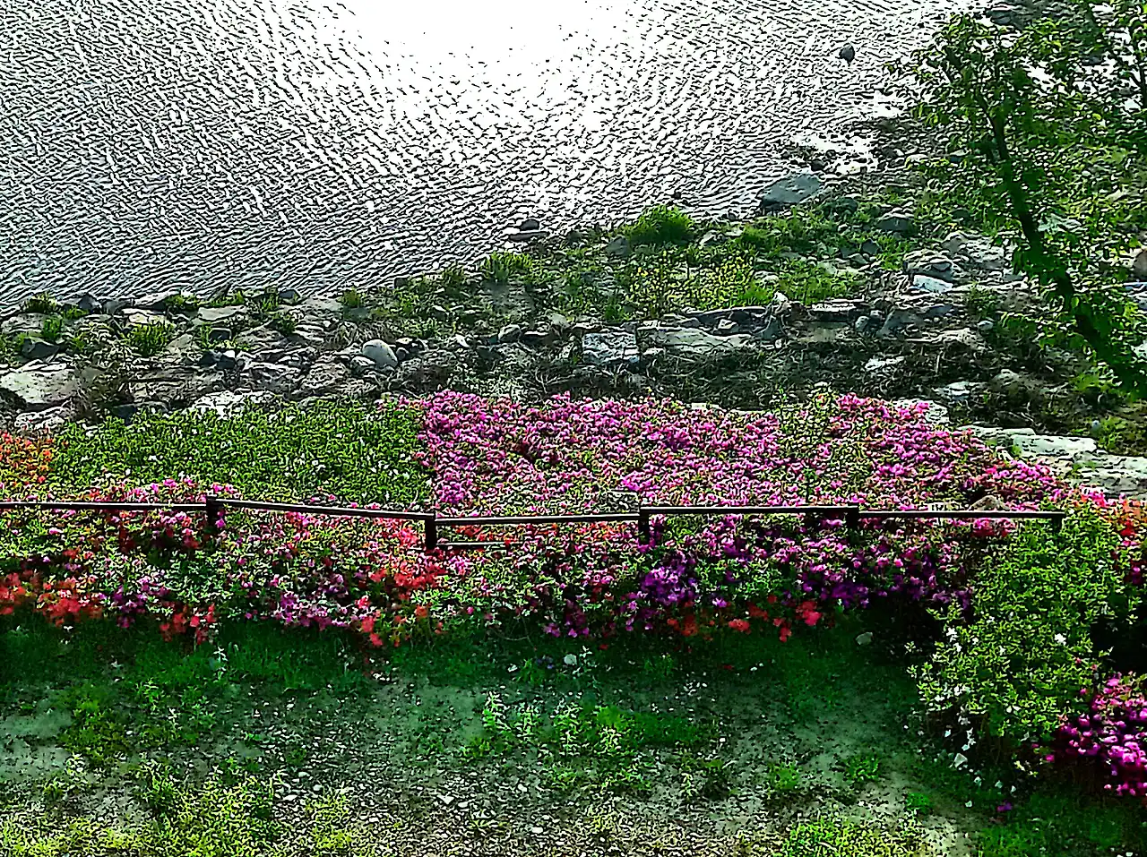 강으로 내려가는 길에는 영산홍이 만 그루 넘게 있습니다.