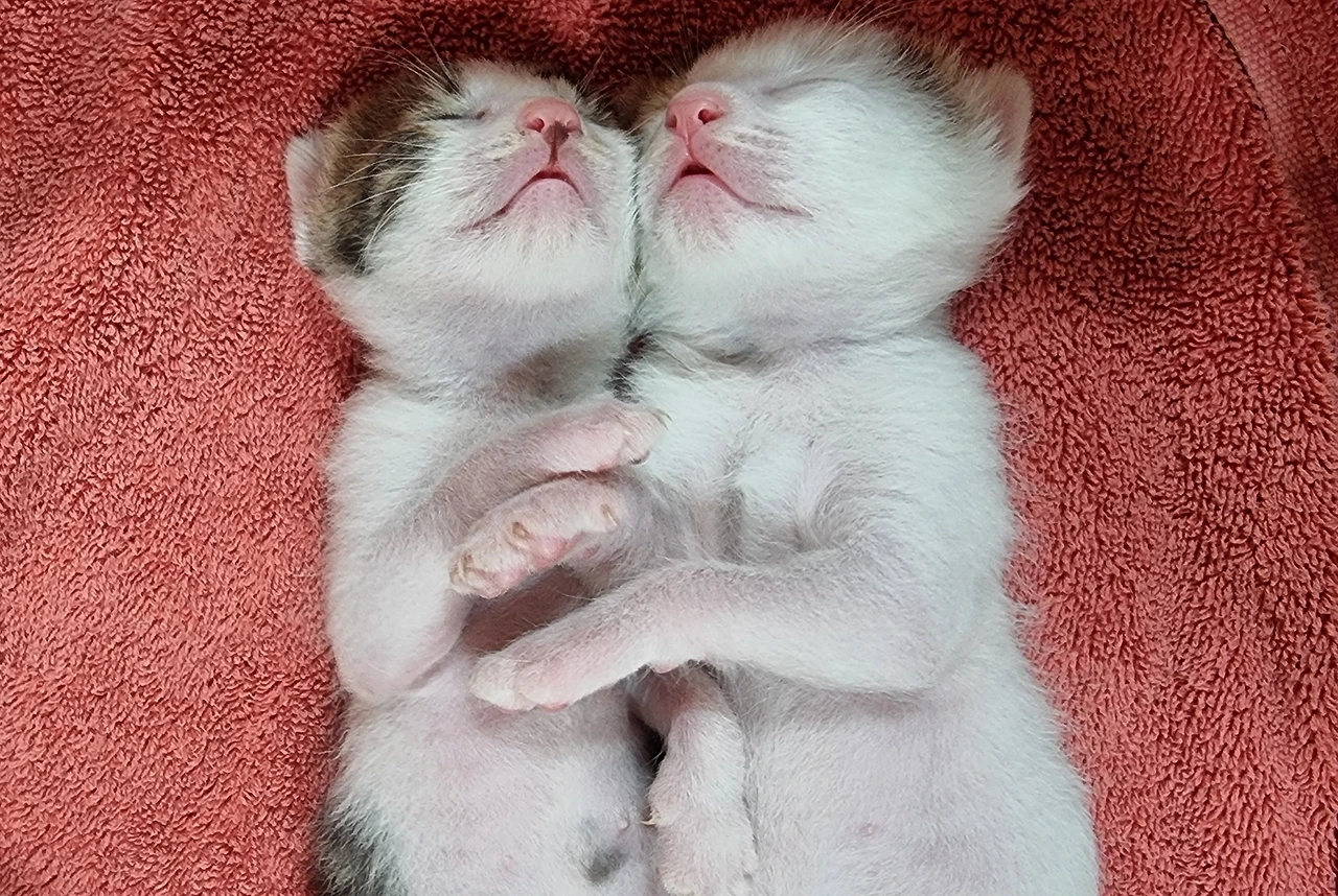 이제 막 눈을 떠서 세상을 구경하는 아기 고양이 사진으로 용서를 구