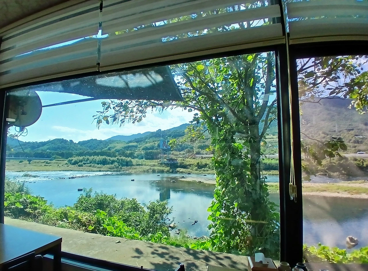 산과 나무의 푸르름과 흘러가는 강물의 흐름에 힐링의 공간이 됩니다.