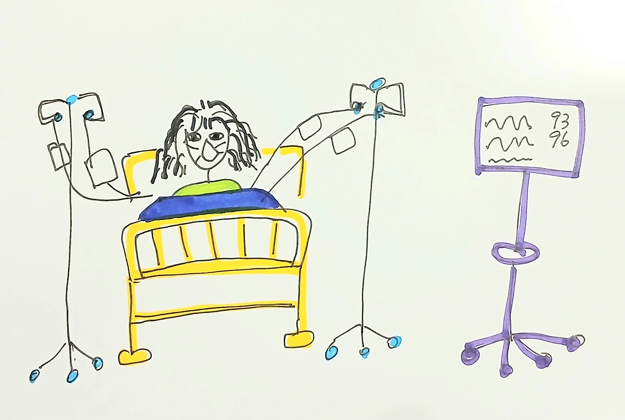 엄마가 마스크 치료를 끝내고 급히 연락받고 온 딸에게 말을 하기 시작한다.
