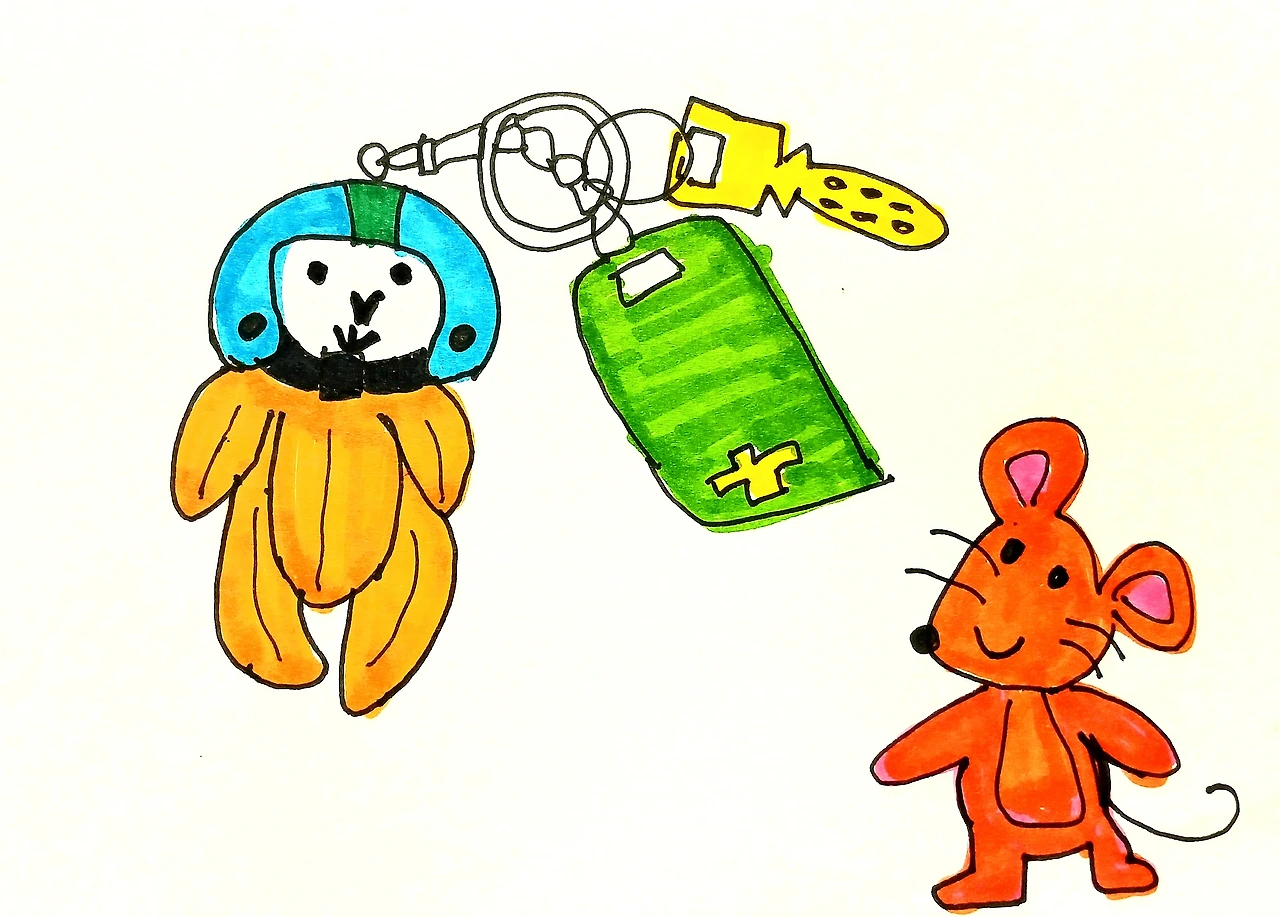 떨어져 지내는 딸을 오랜만에 만나서 새로 산 귀여운 생쥐 키홀더를 보여줬다.
