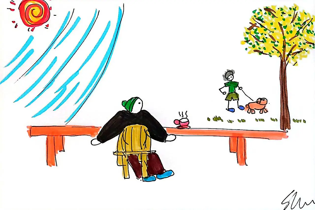 햇볕에 겨울 파카를 벗는