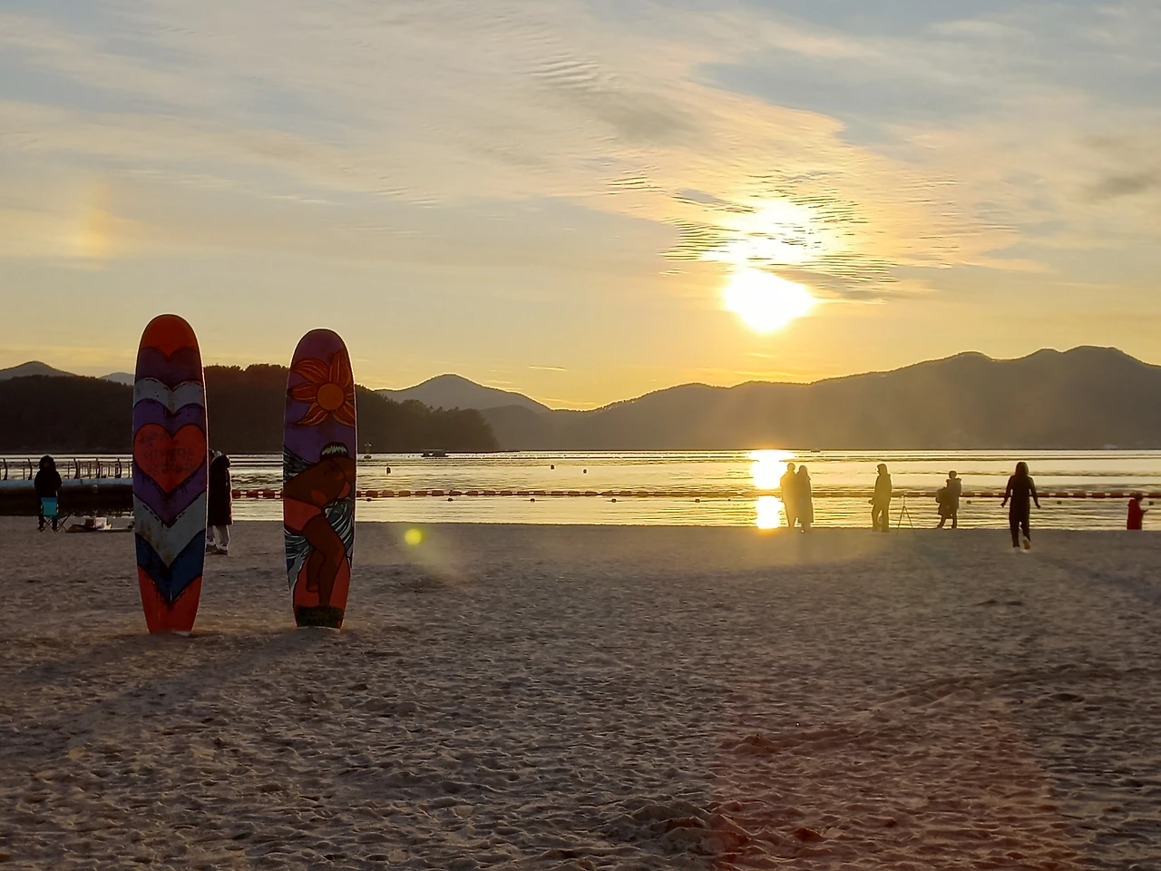 떠오르는 태양은 역동적입니다. 신납니다. 뭐라도 힘차게 할 수 있을 것 같습니다. 새해 첫날 사람들은 떠오르는 태양을 보면서 마음을 다지고 소망을 이야기합니다. 어렵고 힘들었던 기억들은 잊고 새 출발을 기원합니다. 시작도 중요하지만 마무리가 좋으면 다 좋다는 말이 있지 않습니까? 저만 아는 이야기인가요? 갑자기 우리 지역에서만 듣는 이야기인가 싶기도 하네요. 여행을 가서 고생을 많이 하더라도 마지막을 맛있는 음식으로 마무리하면 즐거운 여행이었다고 하는 것처럼요. 이것도 우리 동네 용어는 아니겠지요? 제가 지역 토박이 티를 팍팍 내는군요. 다시 하던 이야기로 돌아와서, 떠오르는 태양의 화려함도. 역동적인 것도 좋습니다. 행복입니다. 아기가 태어나면 모두가 축하해주잖아요. 기쁩니다. 지는 노을은 차분합니다. 조용한 듯 하지만 노을빛은 넓게 넓게 퍼져나갑니다. 소리 없는 울림입니다.