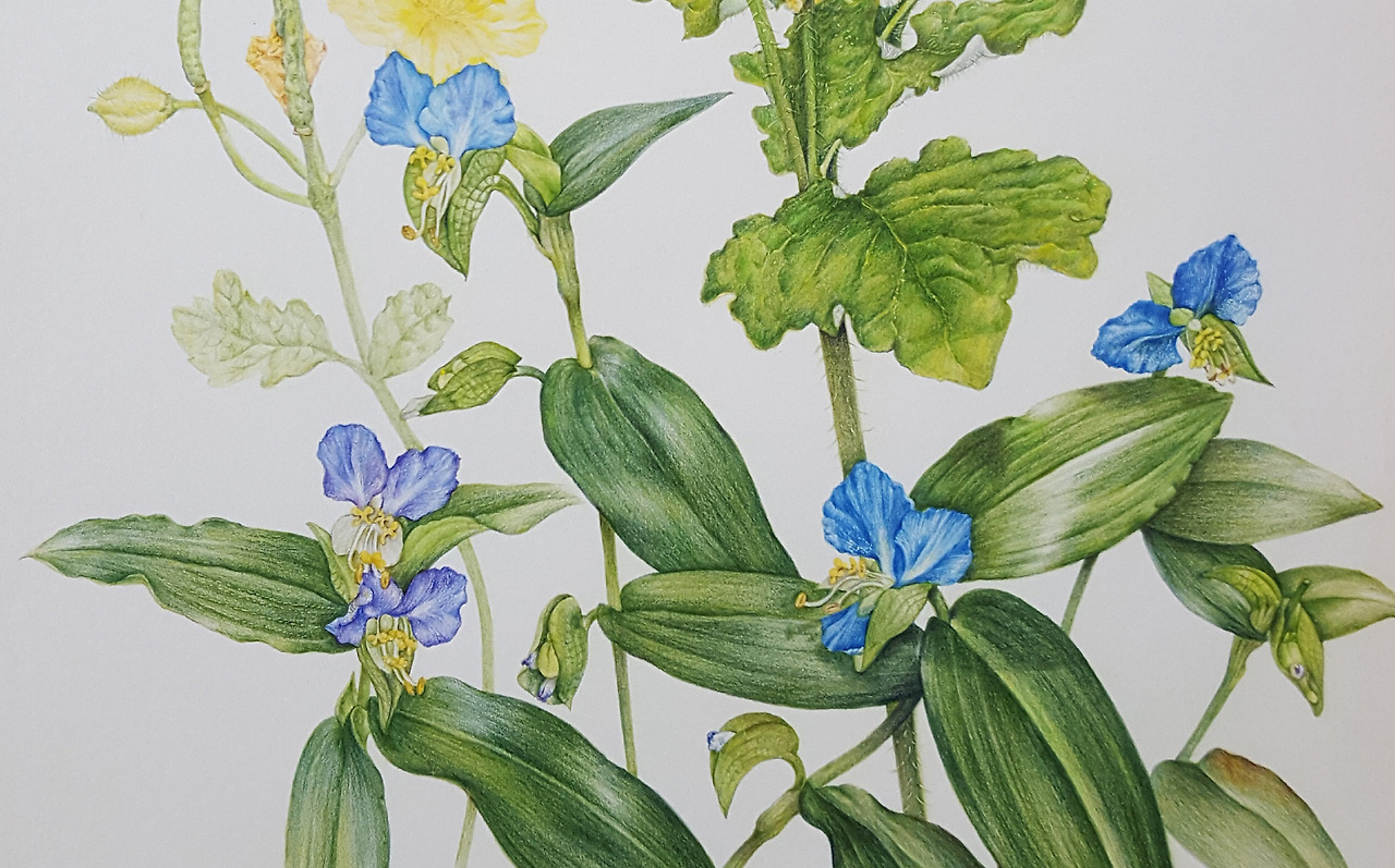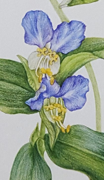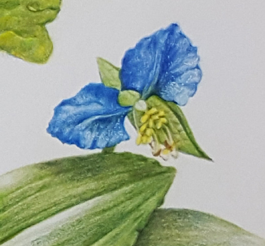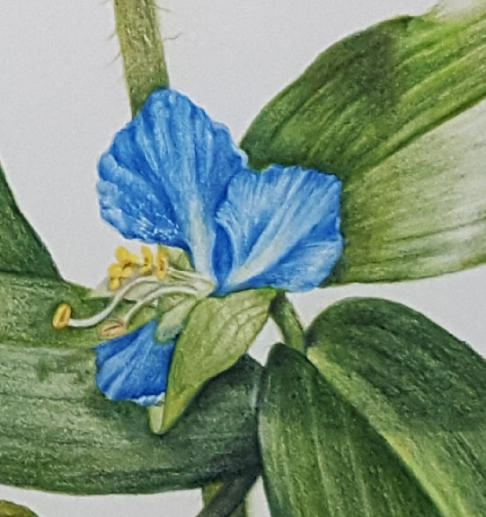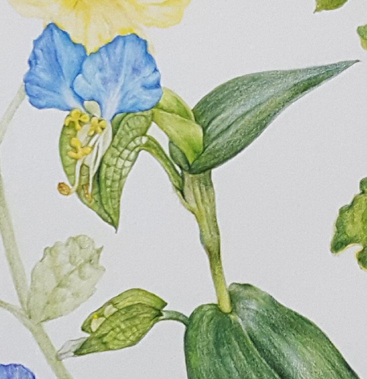 콩깍지 속의 콩같이 생긴 앙증맞은 꽃봉오리며 빼꼼히 얼굴 내밀기 시작하는 파란 꽃잎, 화려함을 뽐내는 활짝 핀 꽃과 가녀린 수술들까지.. 사진 한 장에는 다 담을 수 없는 이 모든 것들을 종이 한 장에 담아낼 수 있어서 내가 창조주가 된 느낌마저.. 이것이 그림의 힘~!