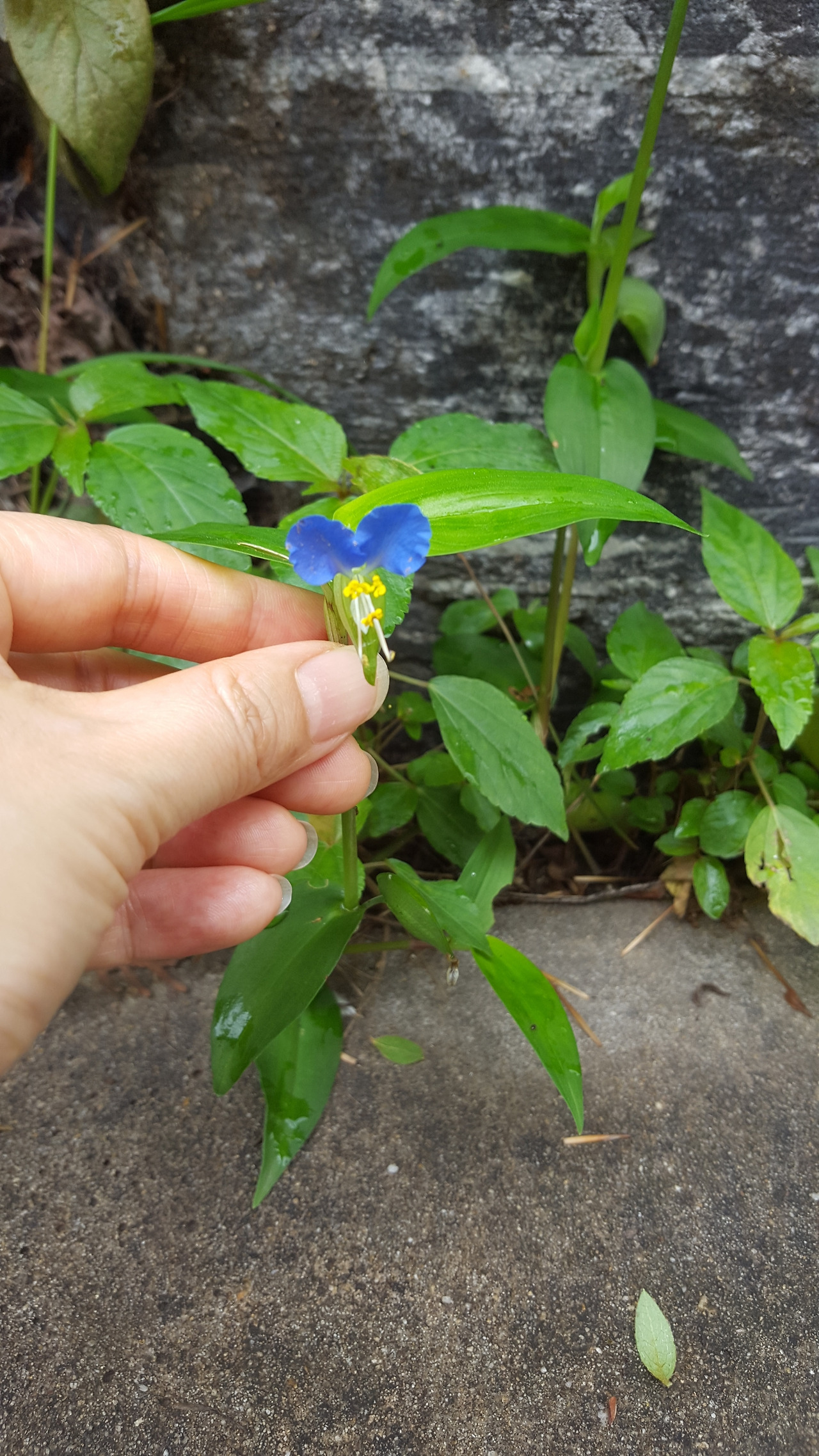 닭의장풀은 관심을 두지 않으면 잘 보이지 않는 풀이지만 꽃이 피면 파란 빛의 꽃이 호기심을 자극한다. 꽃잎이 두 개인 줄 알았는데 아래를 받치고 있는 흰(투명한) 것까지 합쳐서 3개이다. 아무튼 흔한 꽃 모양이 아니라 더욱 매력적이다. 닭의장풀은 파란 빛이 가장 많은데 보랏 빛, 자줏 빛도 종종 눈에 띈다. 꽃은 8월에 한창이지만 위의 사진처럼 7월부터 간간이 보이기 시작한다.