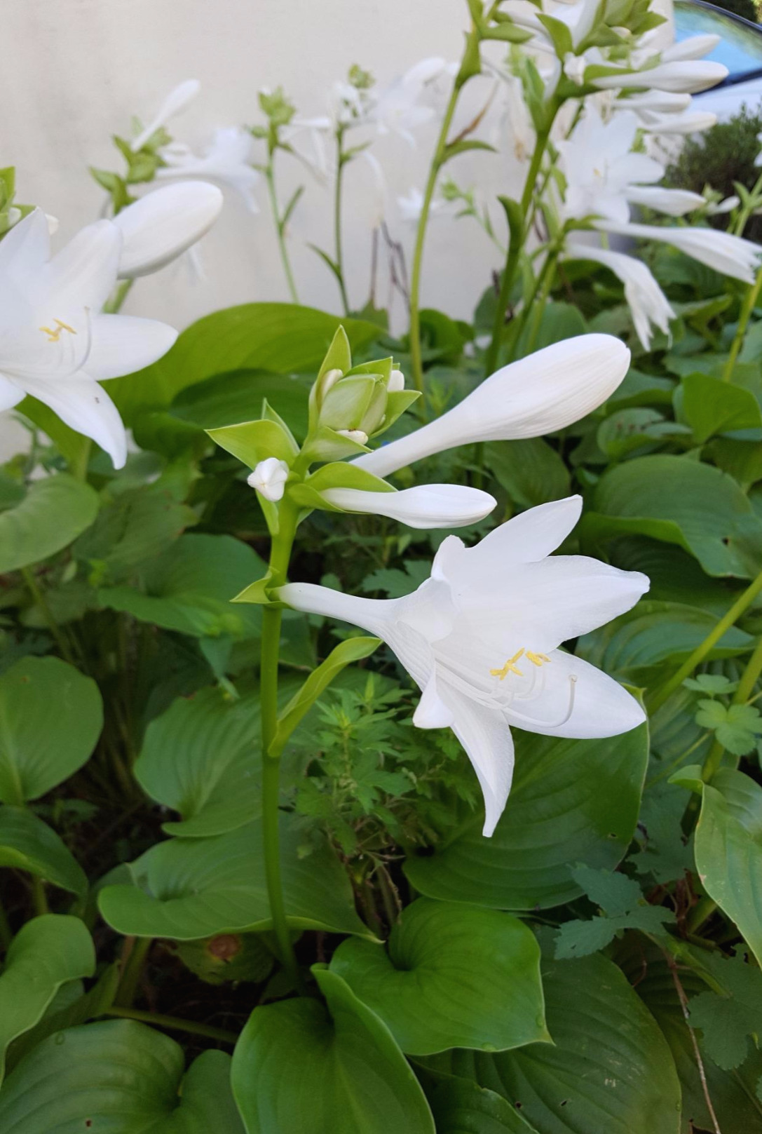 옥잠화는 빛을 별로 좋아하지 않는 것 같다. 동네 여기저기 많이 피어있는 옥잠화를 모두 관찰하며 다녔는데 대부분 그늘에서 자라고 해가 중천에 뜨기 전인 아침과 밤에만 활짝 핀 꽃을 볼 수 있었다. 해가 들면 봉오리를 오므려서 옥잠화의 우아한 자태를 볼 수 없으니 옥잠화의 아름다운 모습을 보려면 오전 10시 이전 또는 깜깜한 밤에 보시기를 추천드린다. 옥잠화도 비비추처럼 무리 지어 피어 있는 경우가 많은데 여러 송이가 활짝 꽃봉오리를 열고 있으면 그 향기가 꽤 강하고 매혹적이다. (비비추도 향기가 있었던가??) 백합보다 더 은은하고 좋은 향기다.. 너무 좋아~♡♡