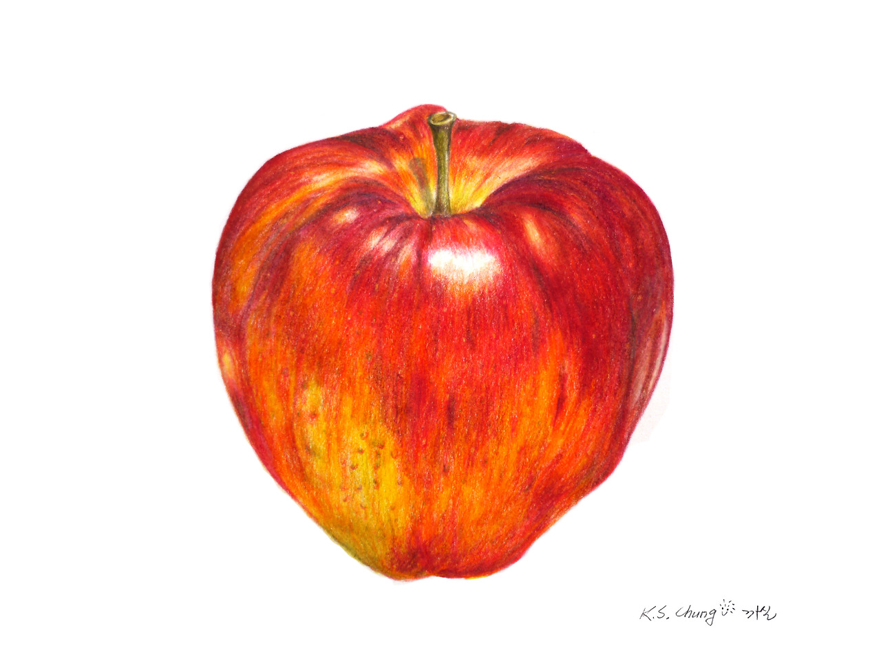 '홍로 사과'는 보태니컬 아트(botanical art, 보타니컬 아트)에 입문할 때 그린 나의 첫 창작 그림이다.