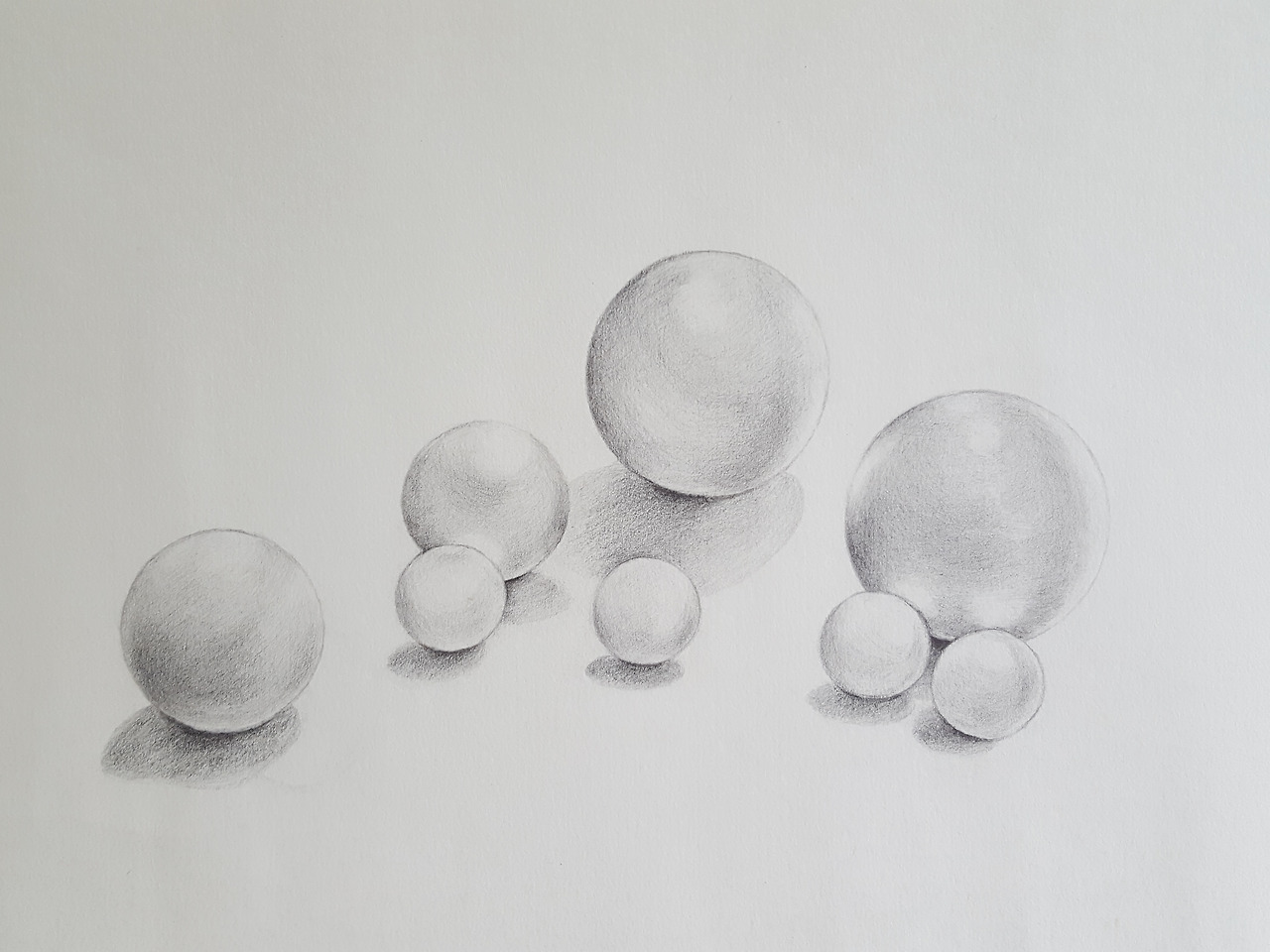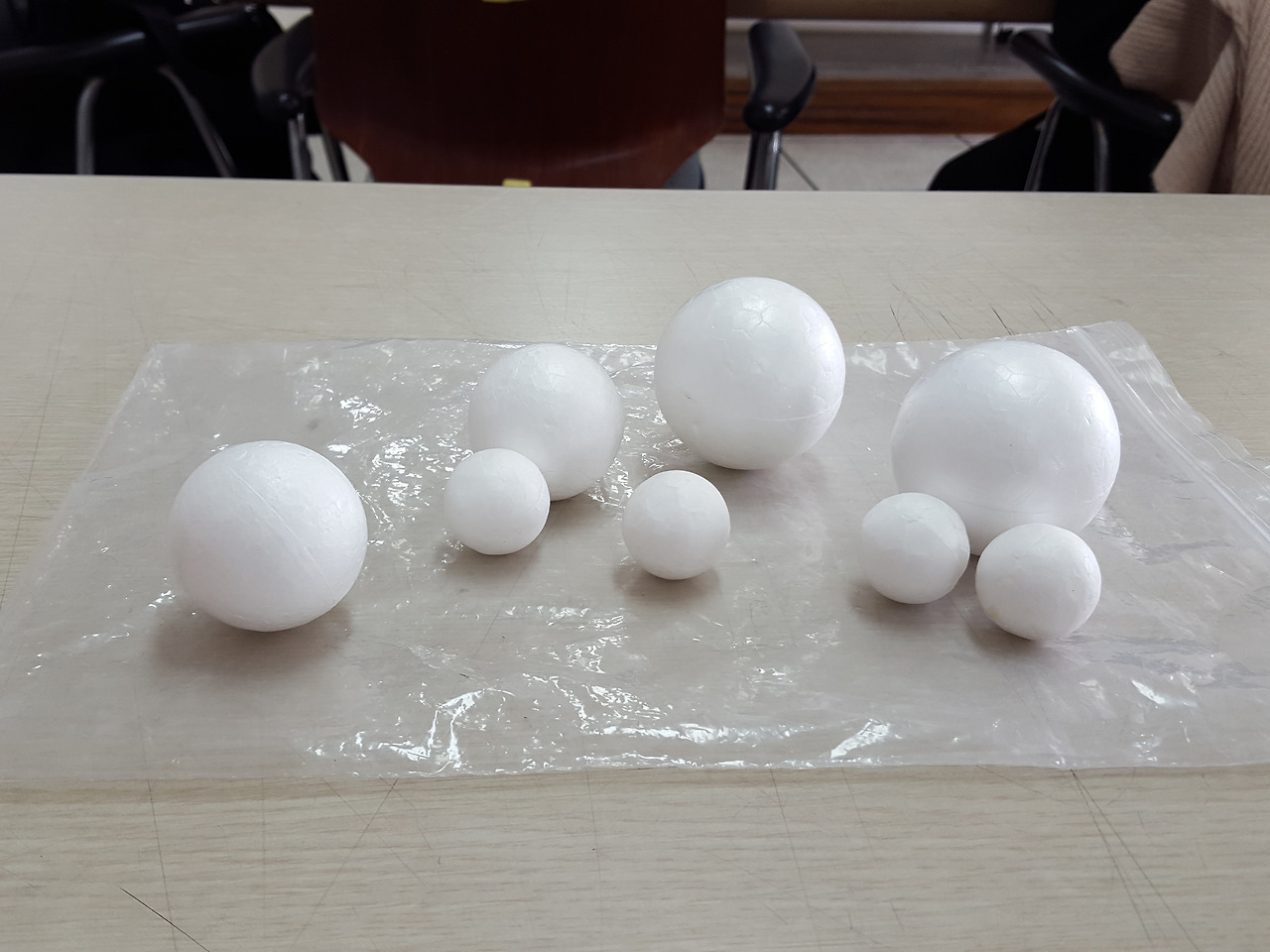 다양한 크기의 스티로폼 공을 나눠주시고는 각자가 알아서 배치하고 준비해온 스케치북에 연필로 스케치를 해보라고 하셨다.