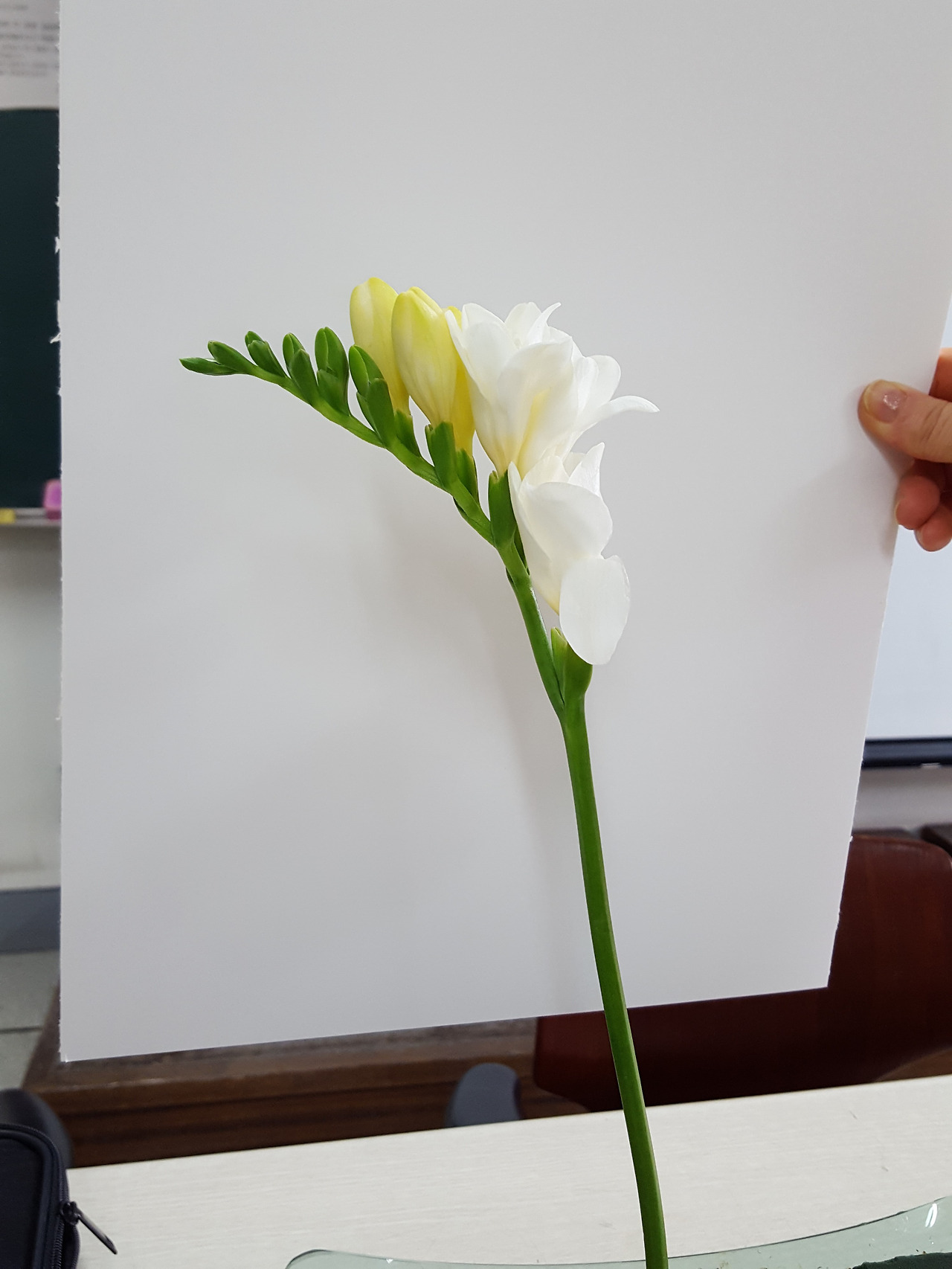 나는 수업시간에 프리지아를 선택해서 그렸는데, 사진은 네 가지 꽃을 모두 찍었다. 이 날 숙제가 있었는데 네 가지 꽃을 모두 아웃라인을 그려보고 꽃잎과 잎의 일부분에 대해서 세부묘사를 해오는 것이었다.