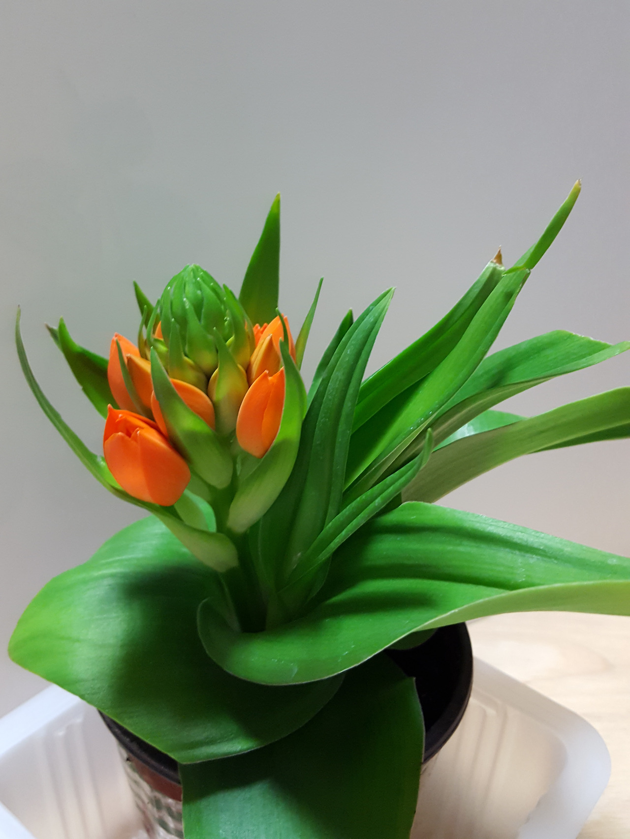 아래는 처음 사 왔을 때의 모습이다. 아직 활짝 핀 꽃은 없고 대부분 꽃 봉오리 상태이며 살짝 벌어지려고 한다.