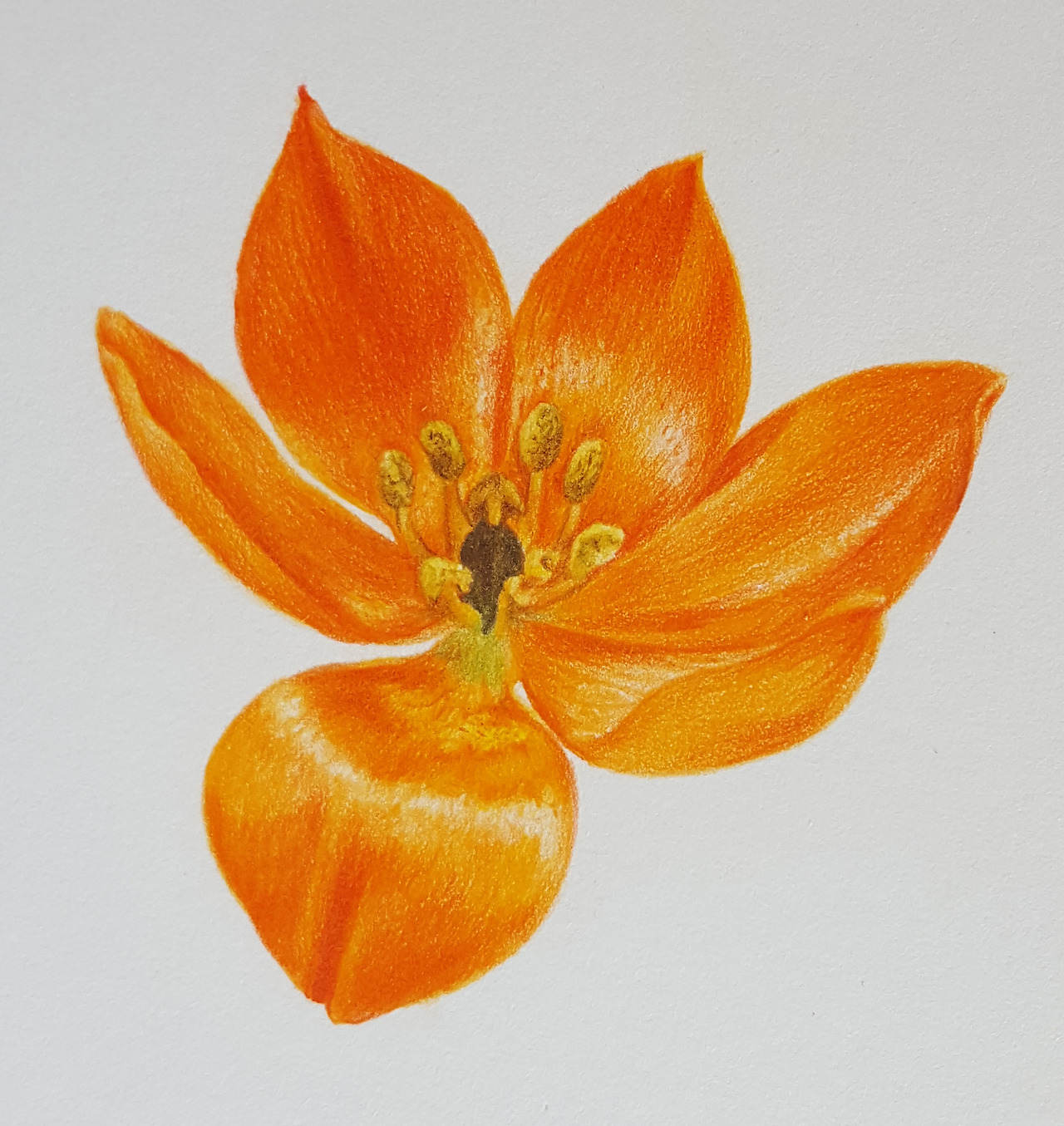 수업시간에는 꽃 한 송이만 색연필로 그려보는 수업이었는데 꽃을 그리려면 꽃의 형태를 잘 관찰하여 구조를 정확히 파악한 후에 스케치에 들어가야 한다. 우리 같은 초보들은 오래 작업을 해야 하기 때문에 식물이 시들기 전에 사진을 잘 찍어두는 것도 필수이지만 사진에만 의존해서는 안된다. 사진 상으로 파악하기 어려운 부분도 많으니 꼭 눈으로 관찰하여 기억을 해두거나 필요시 메모를 해두는 것이 좋다.