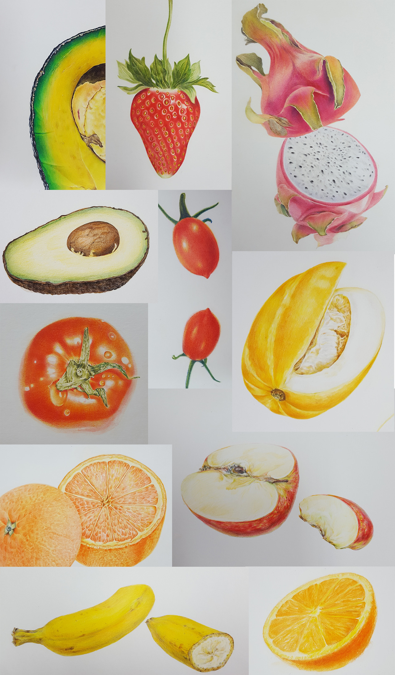 채소나 과일 등 열매는 덩어리라서 양감(입체감)을 잘 표현하는 것이 중요하다. 위의 바나나 그림을 보면 나름 바나나의 질감은 세밀하게 잘 표현한 것 같은데 아직 양감의 표현은 미숙함을 알 수 있다.