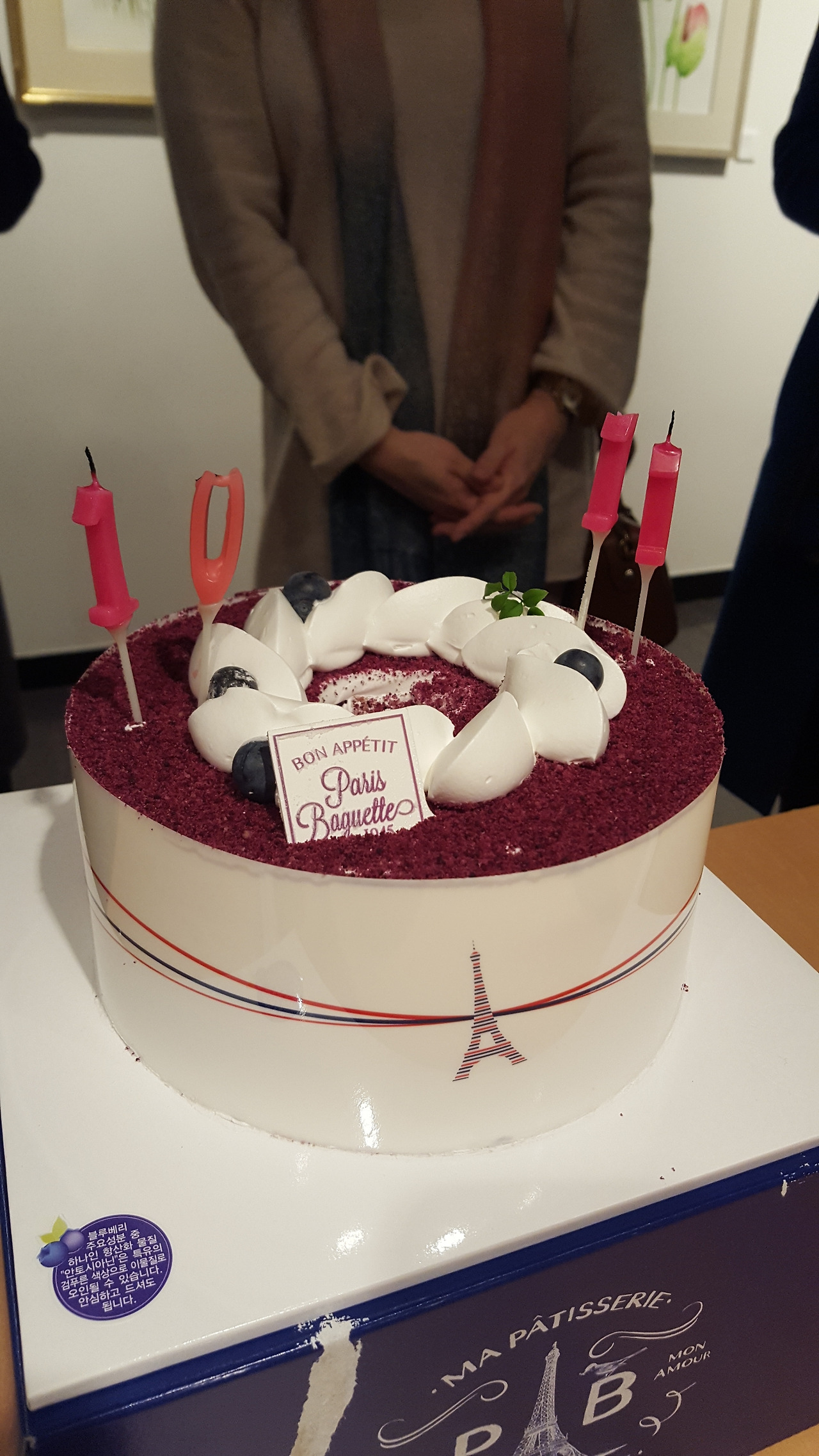 가능하면 꽃다발과 화환, 화분 등은 전시관 안에 놓지 않고 받지 않는 것을 원칙으로 세웠고 내 주위분들에게도 그렇게 전달했다. 작품 감상에 방해가 될 뿐만 아니라 관람객과 작가 모두에게 부담이 덜 가도록 하는 좋은 방법인 것 같다. 그런데도 가족이나 지인분들은 그냥 오는 분들이 거의 없었는데 그렇게 하지 않으셔도 보러 와주시는 것만으로도 충분히 감사한 일이라고 말씀드리고 싶다. 당번이 아닌 날 다녀가신 분들에게는 정말 미안했으니 말이다.