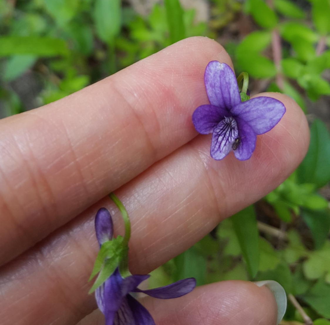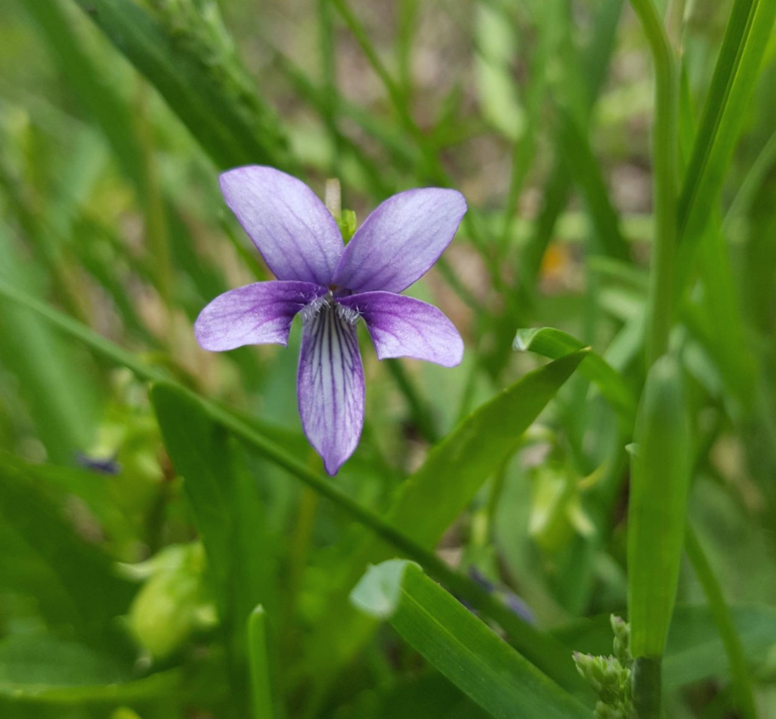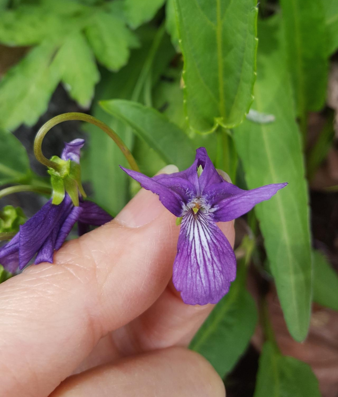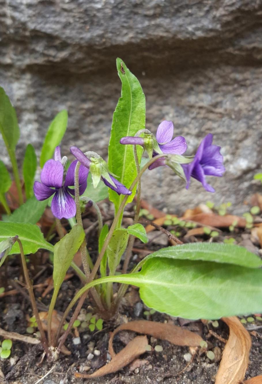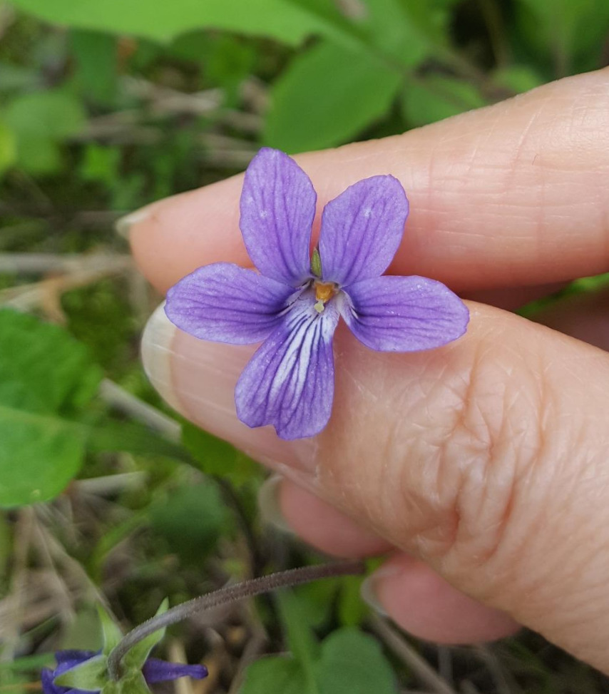 처음에 있는 사진의 제비꽃과 아래 몇 장의 사진들, 그리고 내 작품 속의 제비꽃의 이름은 (다른 이름이 붙지 않은) 그냥 '제비꽃(Viola mandshurica)'이다. 색은 진한 자줏빛도 있고 연한 자주(보라)빛에 선명한 같은 색 줄무늬가 있는 것들도 있는데 구별할 수 있는 특징은 잎 모양이 길고 잎자루와 이어지는 부분에 날개가 있으며, 꽃은 안쪽에 흰 털이 나있고 꽃줄기는 연둣빛에 잔털이 없다는 것이다.