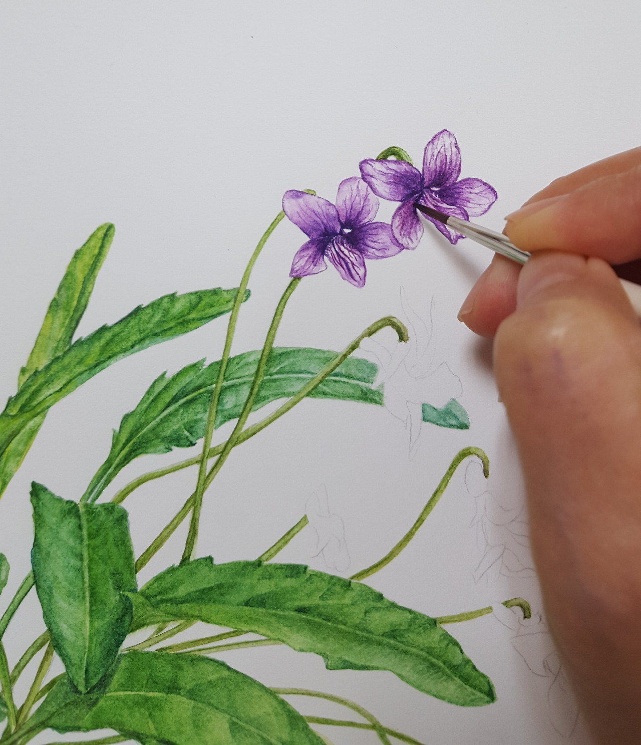 길고 날개가 있는 잎과 연둣빛 꽃줄기, 꽃잎 속의 흰 털 등이 표현된 보태니컬 아트(botanical art, 보타니컬아트) 작품 '제비꽃(Viola mandshurica)'이 이렇게 세상에 나왔다. 공부를 많이 하고 나온 작품이라 훌륭하지는 않지만 애착이 간다. 식물 그림은 쉽게 그릴 수 없다는 것을 또 한 번 깨닫는다.