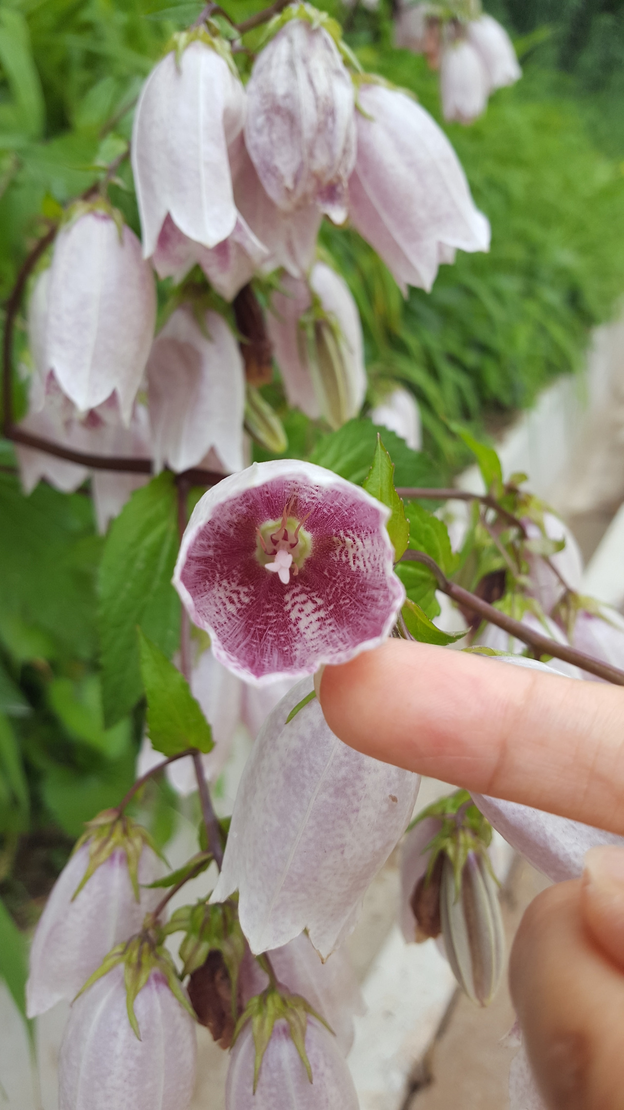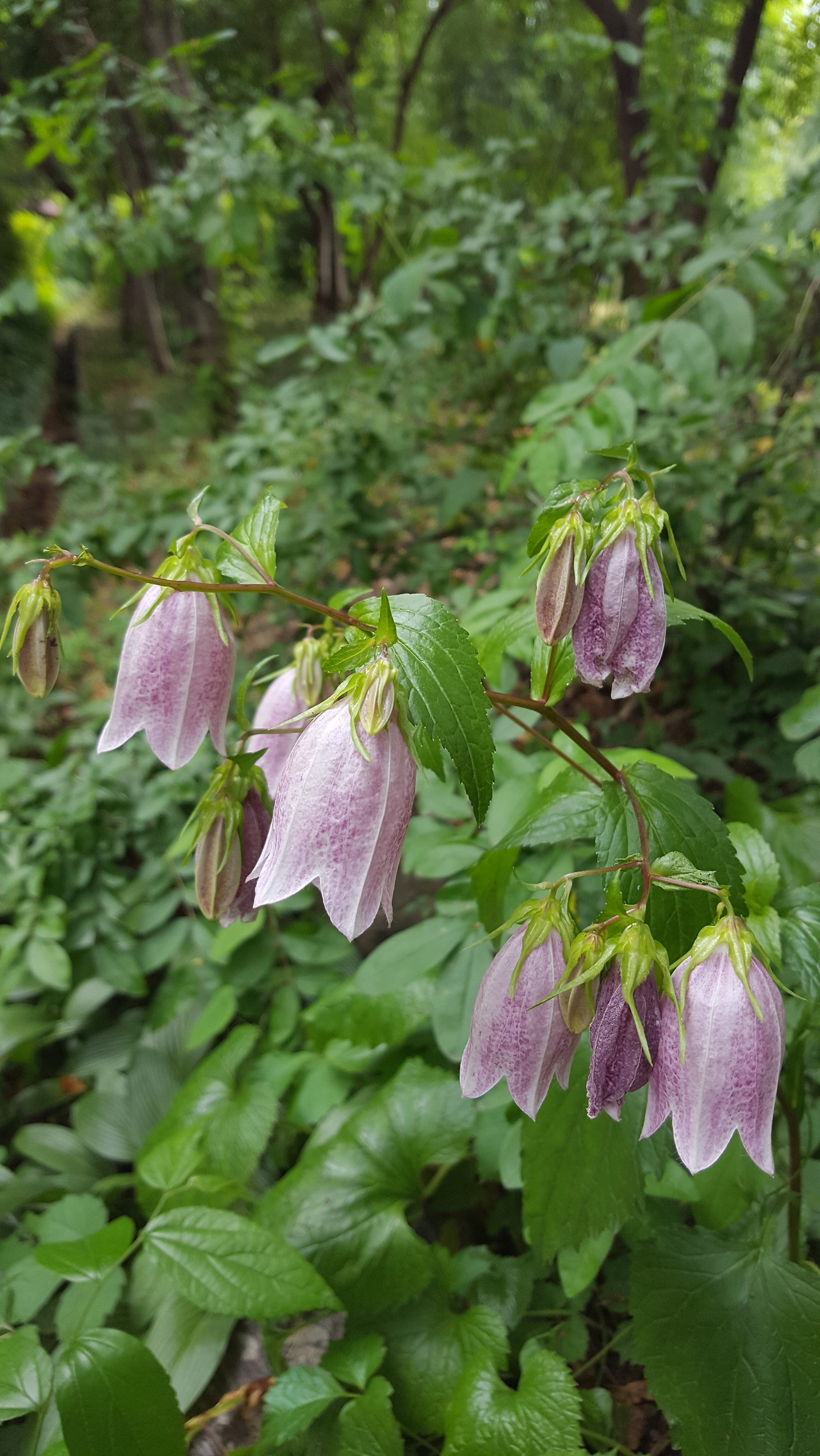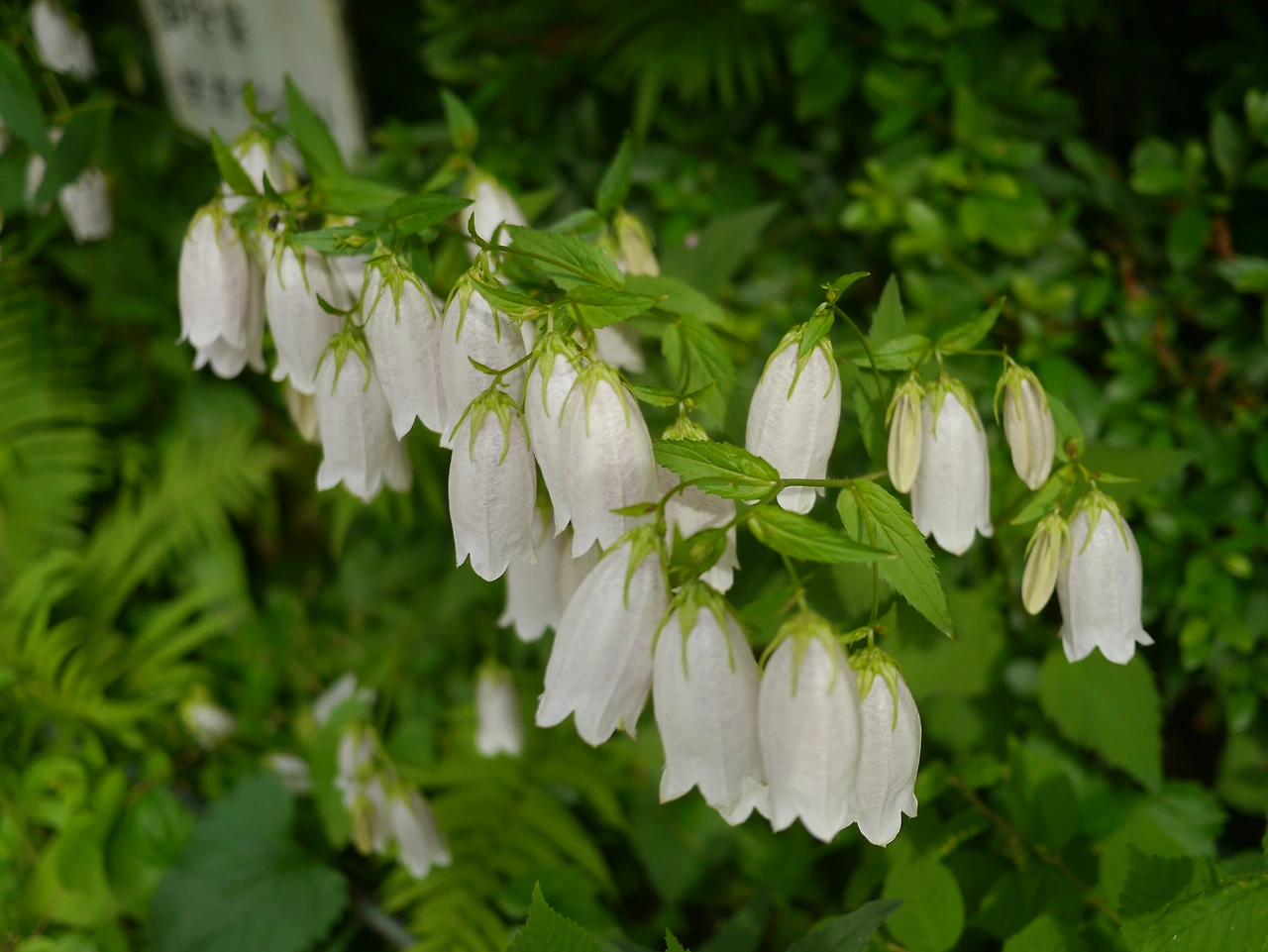 초롱꽃은 6~8월 여름에 피는 여러해살이풀로 우리나라에서 자생하는 꽃인데, 망초꽃이나 애기똥풀처럼 동네에서 그렇게 흔하게 볼 수 있는 꽃은 아니다. 종모양 같기도 하고 초롱(초롱불) 모양을 닮아서 '초롱꽃'이라 이름 붙여졌다고 하는데 흰색 또는 연둣빛, 자줏빛이 도는 초롱꽃을 볼 수 있다.