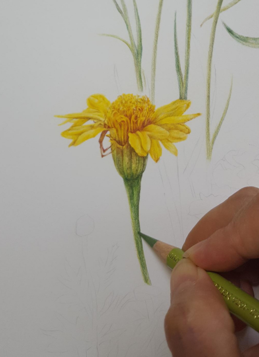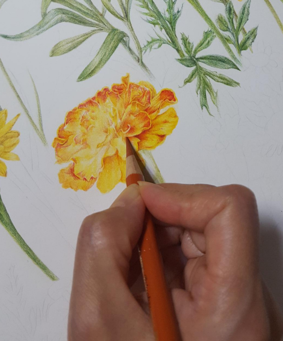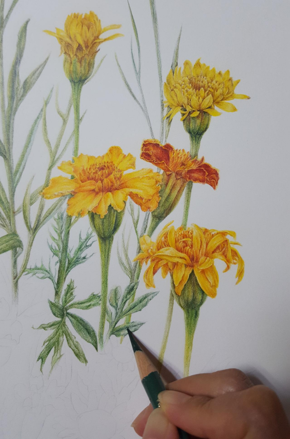 색연필로 그린 보태니컬아트, 프렌치메리골드