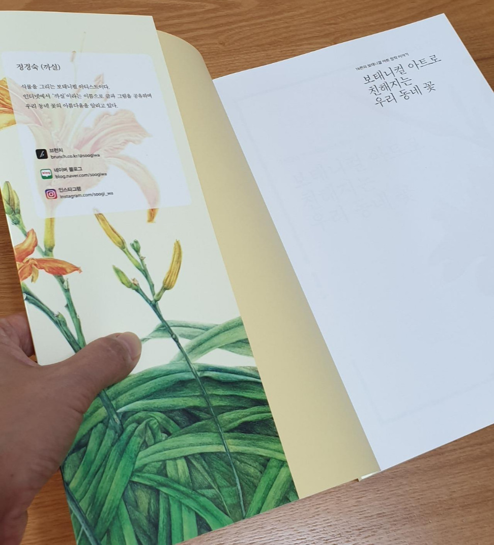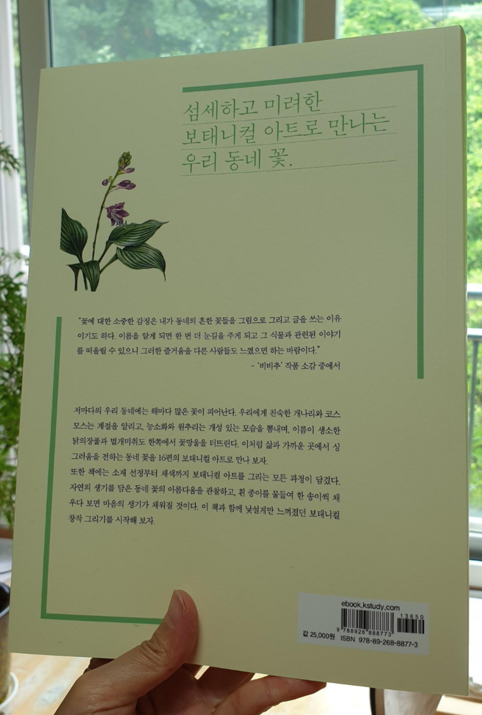 보태니컬 아트로 친해지는 우리 동네 꽃 섬세하고 미려한 보태니컬 아트로 만나는 우리 동네 꽃저마다의 우리 동네에는 해마다 많은 꽃이 피어난다. 우리에게 친숙한 개나리와 코스모스는 계절을 알리고, 능소화와 원추리는 개성 있는 모습을 뽐내며, 이름이 생소한 닭의장풀과 벌개미취도 한쪽에서 꽃망울을 터뜨린다. 이처럼 삶과 가까운 곳에서 싱그러움을 전하는 동네 꽃을 16편의 보태니컬 ...