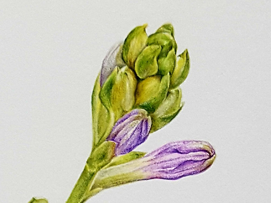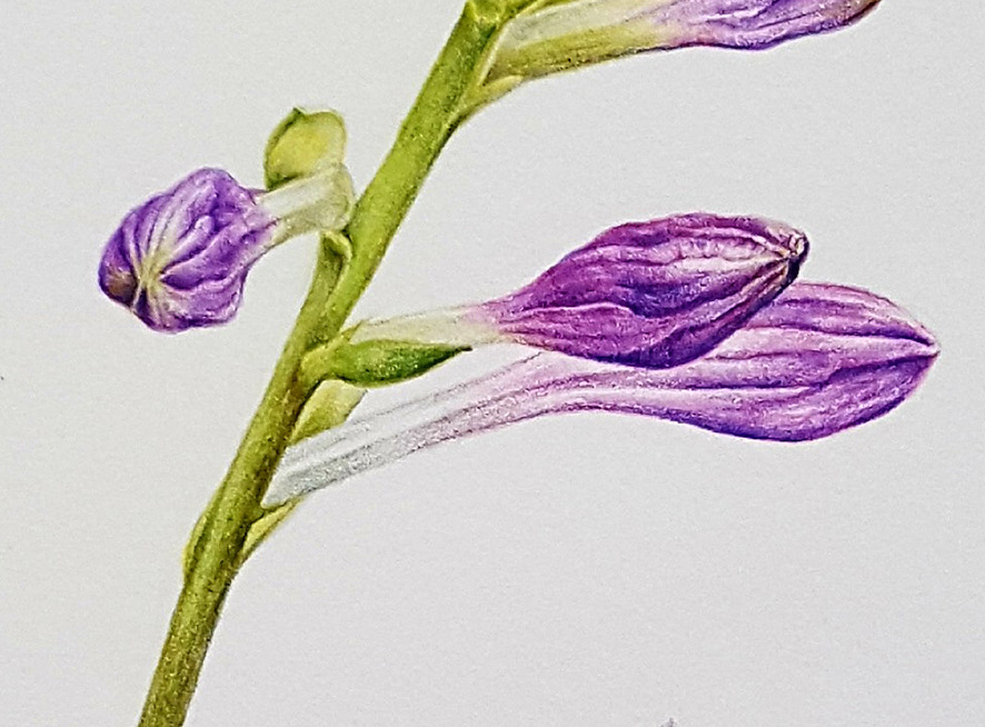 보태니컬 아트(botanical art, 보타니컬 아트)의 특성상 그림을 그릴 때 식물을 아주 자세히 관찰하게 되는데, 이번에 그림을 그리면서 처음 알게 된 사실은 비비추 잎은 줄기에서 나오지 않고 뿌리(흙)에서 나온다는 것이다. 그래서 꽃대에는 꽃받침과 꽃봉오리(꽃)만 달려있다. 옥잠화도 동일하다.