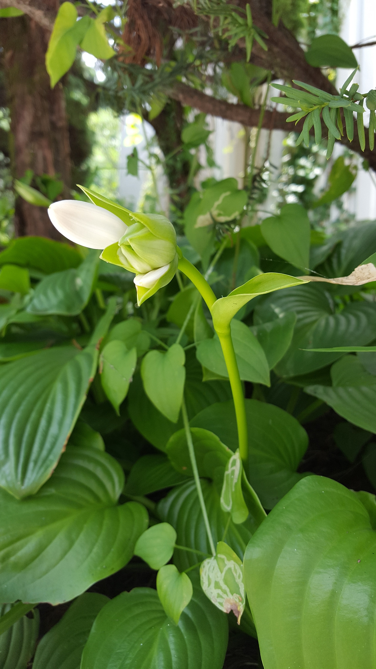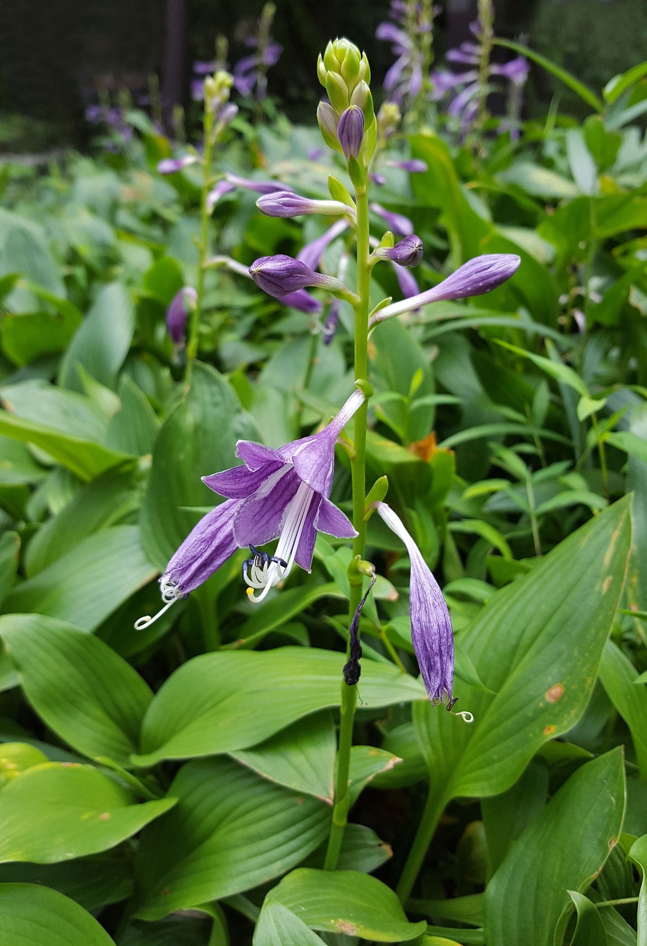 요즘 비비추와 함께 동네에 많이 피어있는 꽃이 옥잠화인데 비비추와는 사촌지간 같다. 옥잠화는 꽃의 색이 희고 잎이 비비추보다 조금 넓적하고 크지만 모양이 아주 비슷하게 생겼다. 그래서 비비추를 '자옥잠(紫옥잠)'이라고도 한다. (시기적으로 비비추 꽃이 옥잠화보다 먼저 핀다. 요즘 비비추는 시든 꽃이 많이 보이고 옥잠화는 아직 봉오리가 많다.)