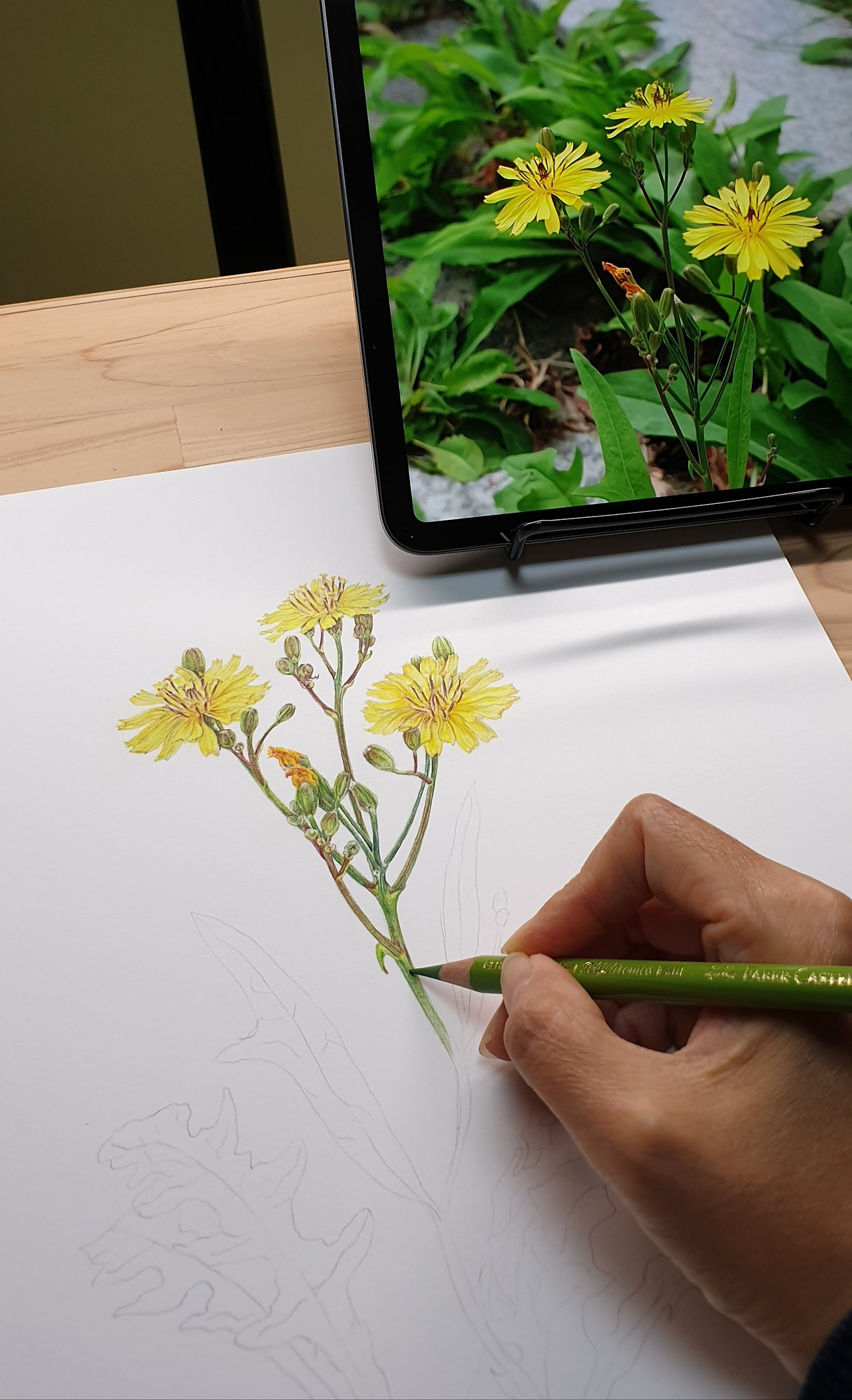 이번 그림의 주인공은 올해 9월에 동네에 피어있던 씀바귀 꽃이다.