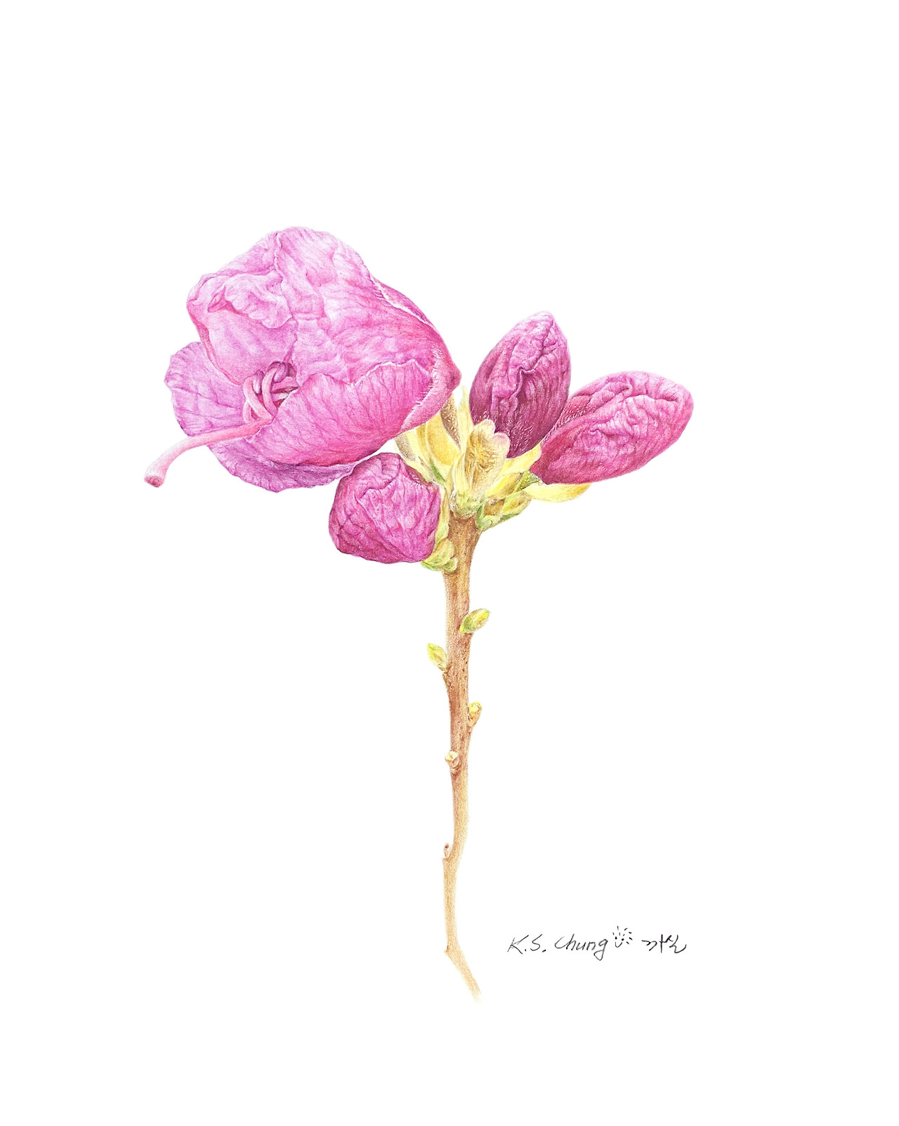 무수히 많은 진달래 꽃 사진을 찍어놓고 진작부터 그리고 싶었지만 그리기 어려운 꽃이라 생각하고 미뤄왔는데 그나마 실력이 좀 나아진 지금 그리게 되어 다행이라고 생각한다.