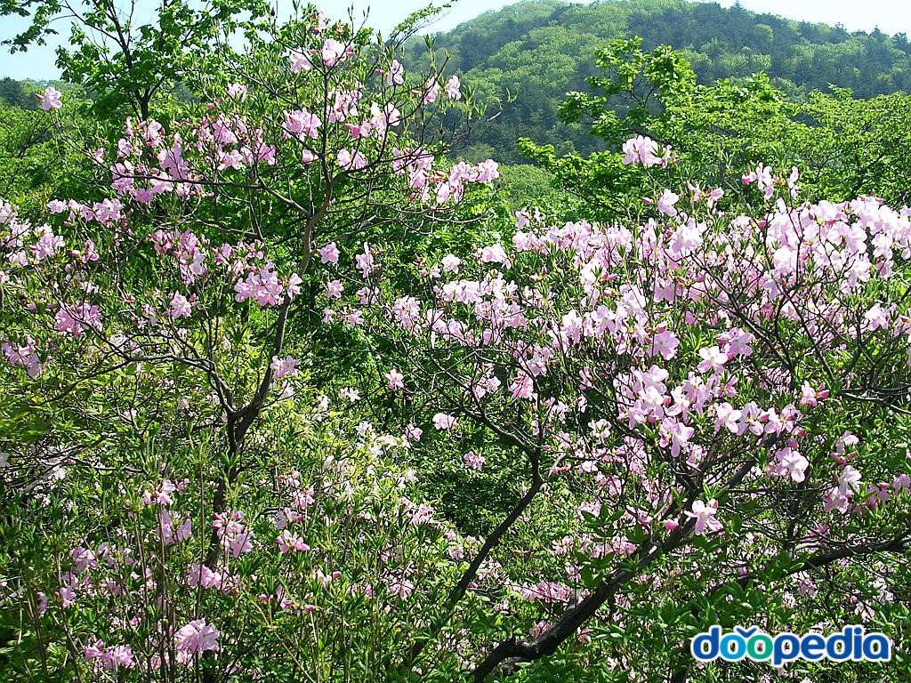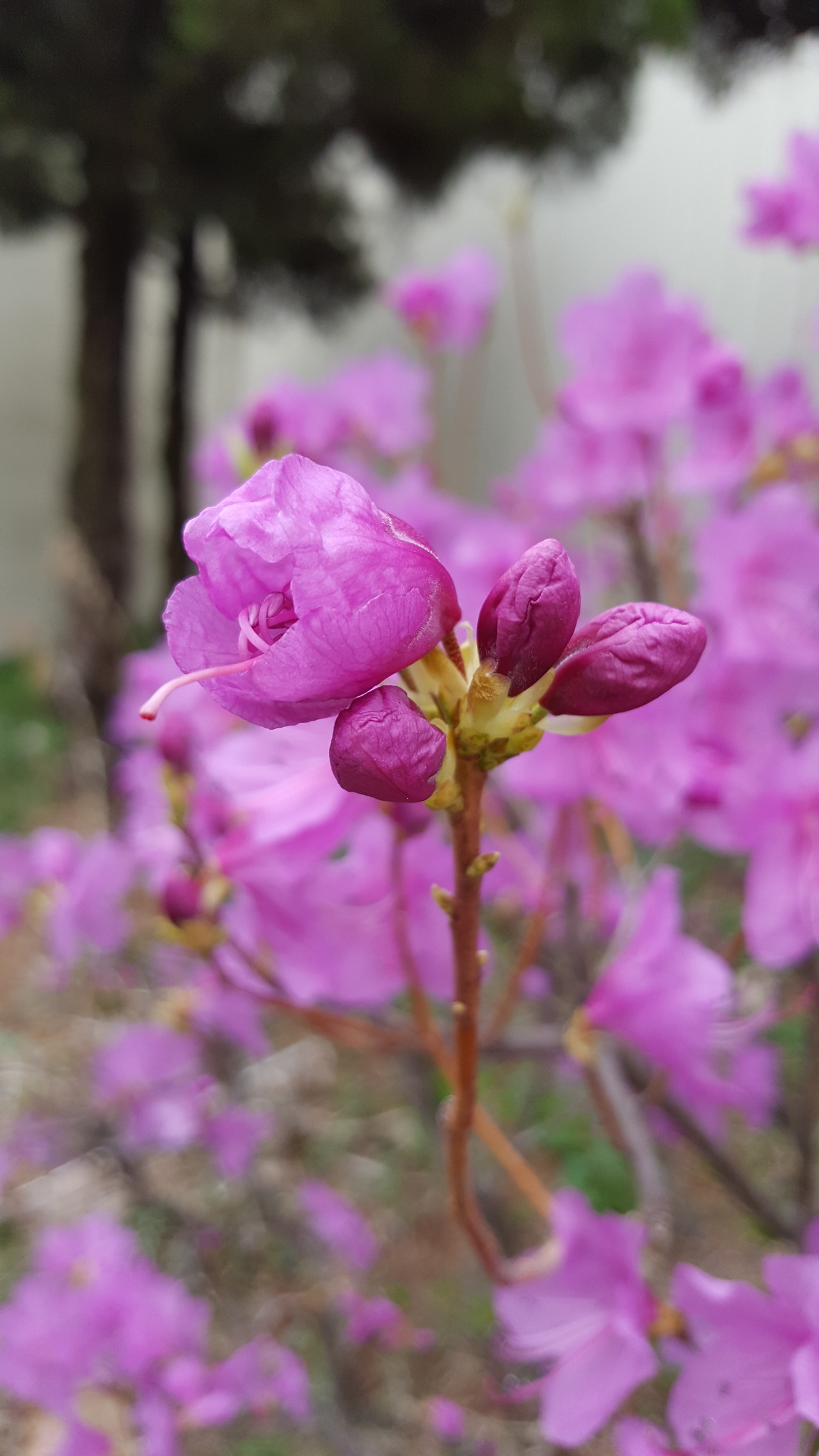 철쭉 나무. 진달래나 산철쭉, 영산홍 등에 비해 나무가 크다. (출처 : 네이버 지식백과)