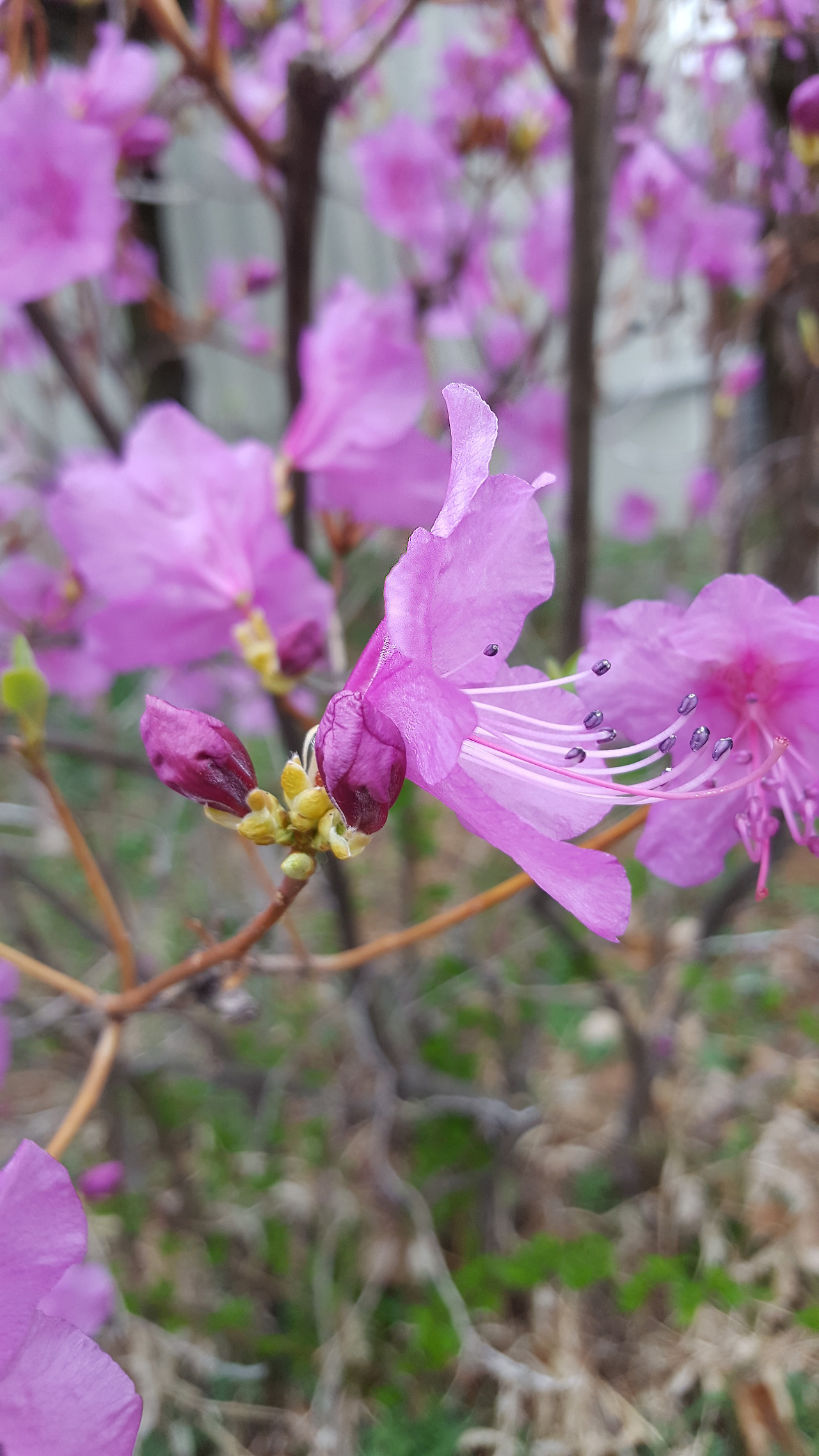 내가 이 꽃을 찍었던, 내가 살던 동네는 대모산 바로 아래에 있어서 주로 산에서 볼 수 있는 진달래와 같은 꽃들을 아파트 단지에서도 쉽게 볼 수 있었는데 현재 사는 동네에서는 진달래를 볼 수 없을 것 같다. 아직 잎이 남아있는 일본산철쭉으로 보이는 꽃나무들만 많이 보일 뿐이니 말이다.