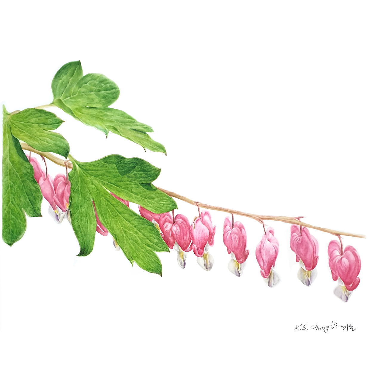 현호색과(科)인 금낭화는 현호색과 닮은 점이 많다.(현호색을 먼저 그리길 잘했다는 생각이 든다.)