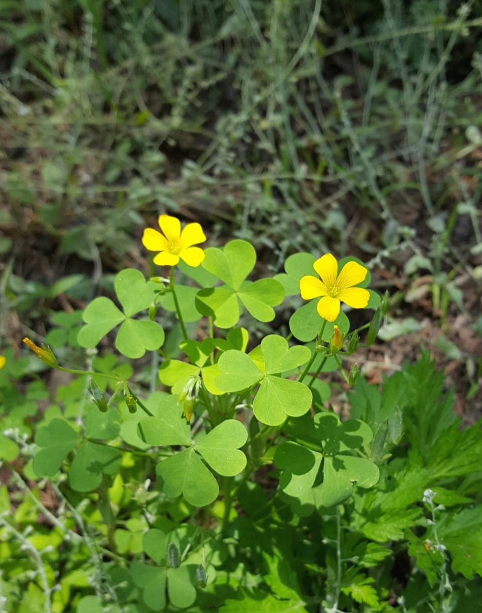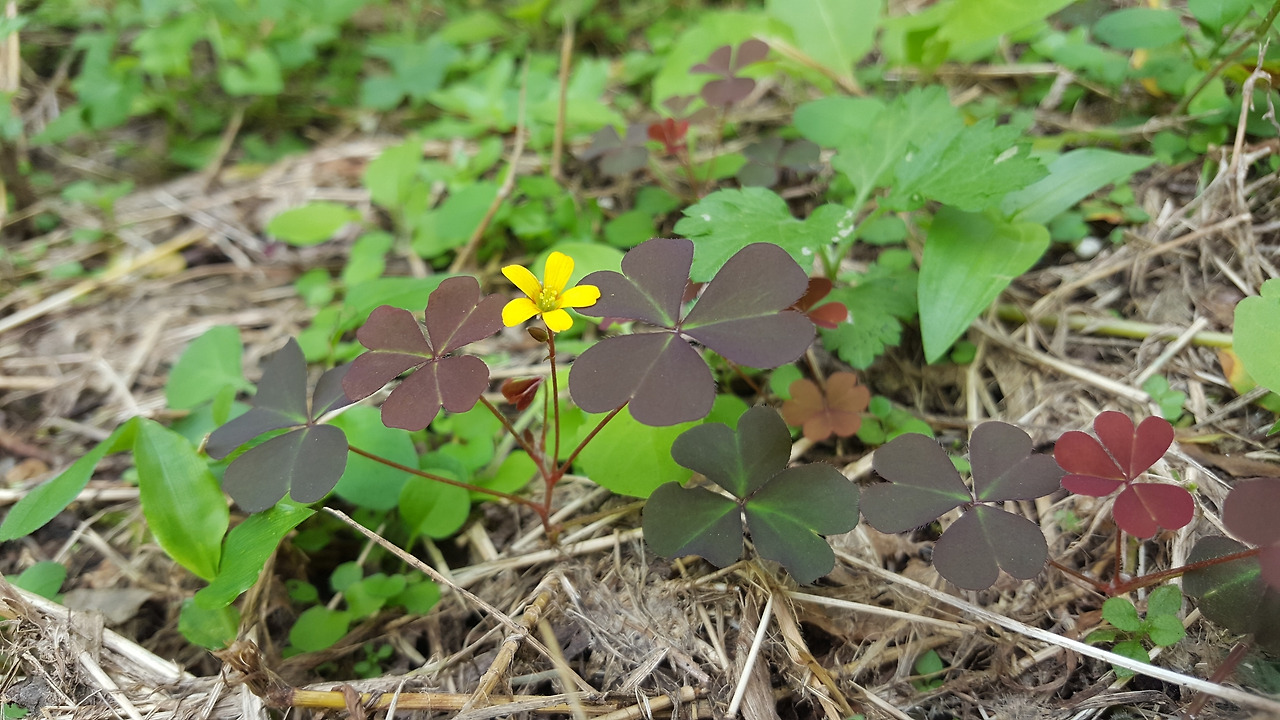 괭이밥. 2016. 5. 12. 동네에서 촬영. 하트 세 개가 붙어 있는 잎이 사랑스럽다.