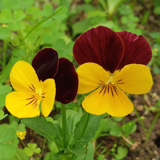 동그란 팬지 꽃 모습만 떠올라 제비꽃과는 많이 닮아 보이지 않는다고 생각하는 분들을 위해 제비꽃과의 비교 사진도 준비해보았다. 꽃줄기부터, 다섯 장의 꽃잎 뒤로 보이는 꽃받침과 그 뒤로 꼬리처럼 삐져나온 꿀주머니까지 전체적으로 보면 제비꽃과 꼭 닮은 모습이다. (꼭 확대해서 보세요!)