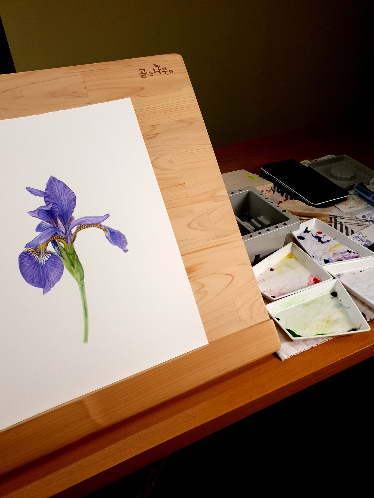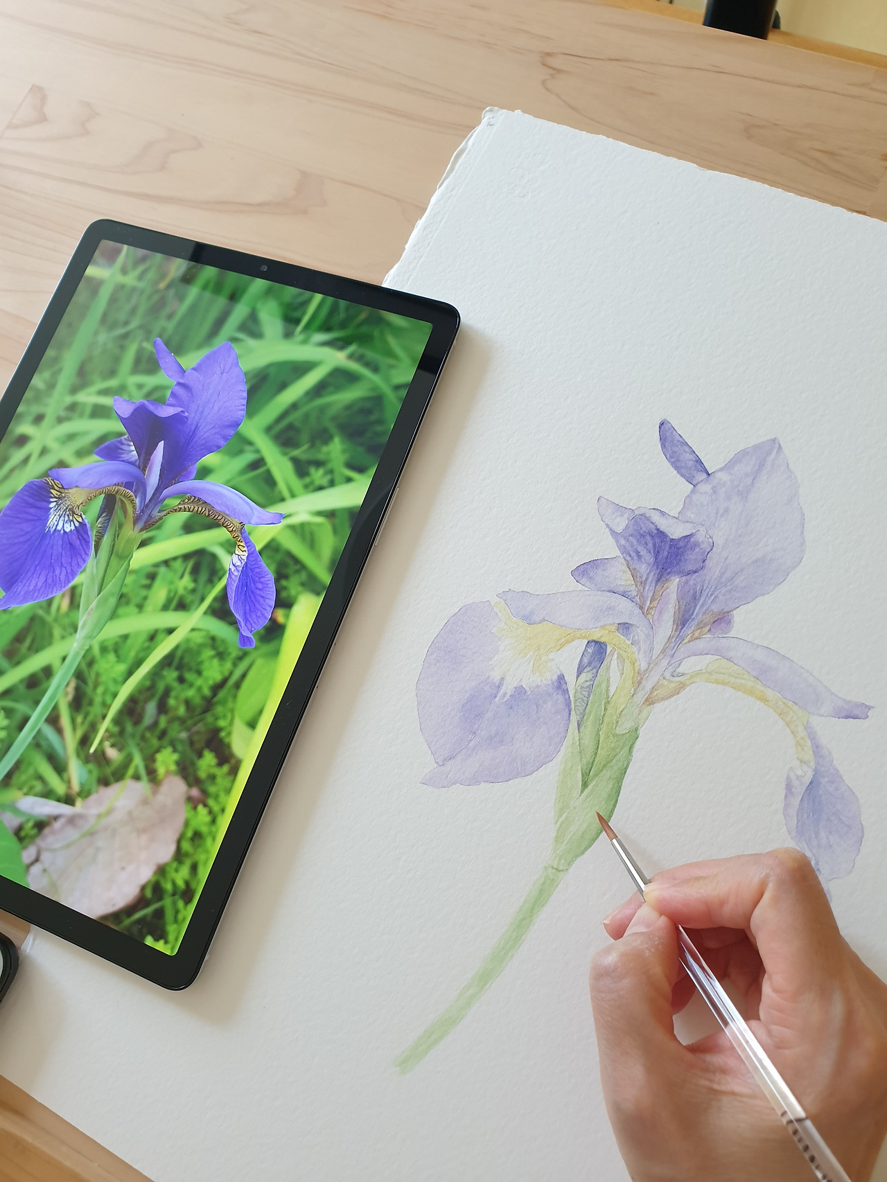 붓꽃을 붓으로 그리고 있는 모습. 2022.5.21~24.