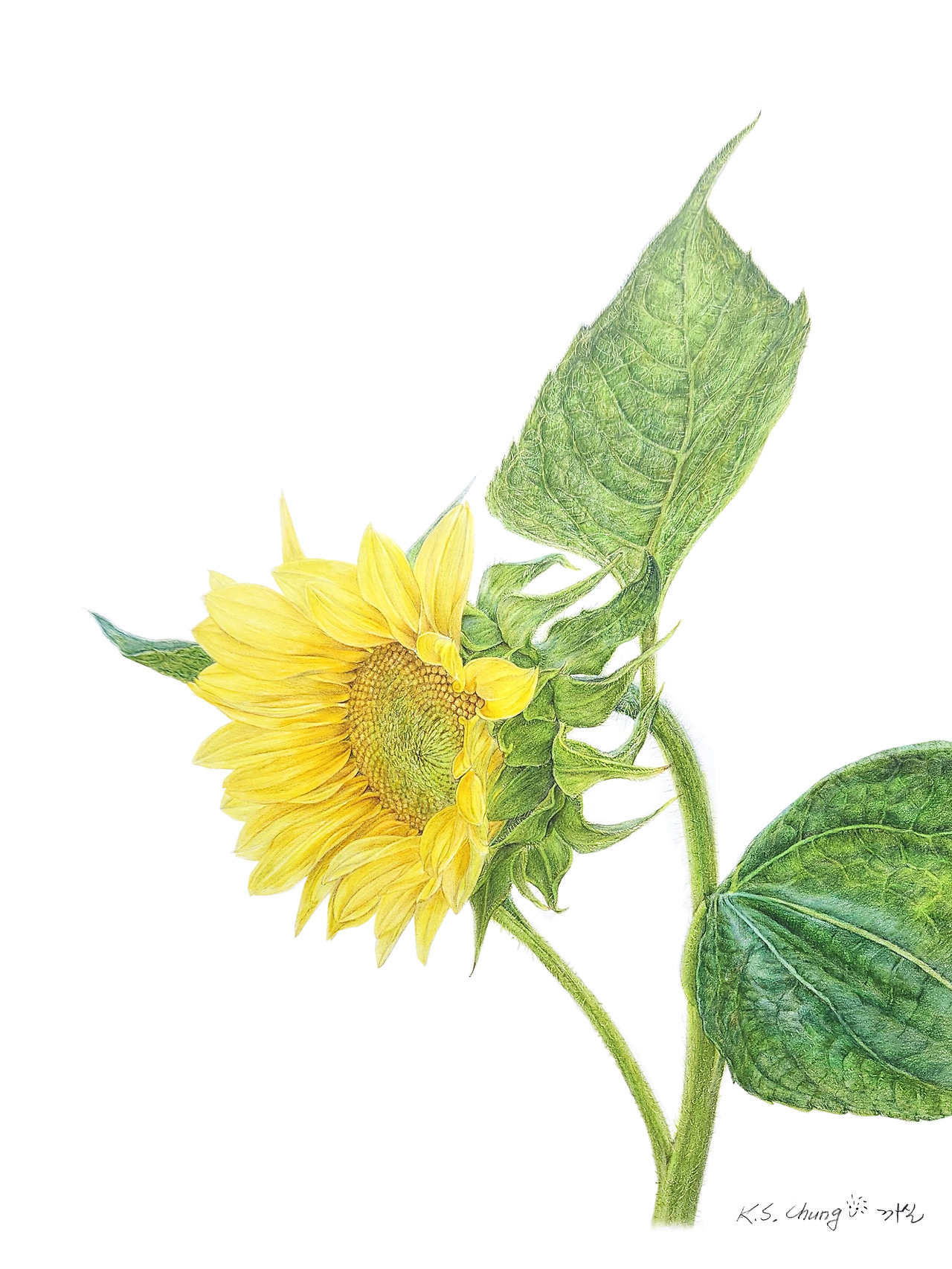 장마가 끝나고 며칠 전부터 본격적인 무더위가 시작됐다. 낮에는 뜨거운 햇빛에 밖에 나가기 두려울 정도인데 이런 뙤약볕에서도 끄떡없이 잘 버티는 꽃, 한 여름의 최강자 해바라기를 이열치열의 마음으로 큰맘 먹고 그려봤다.