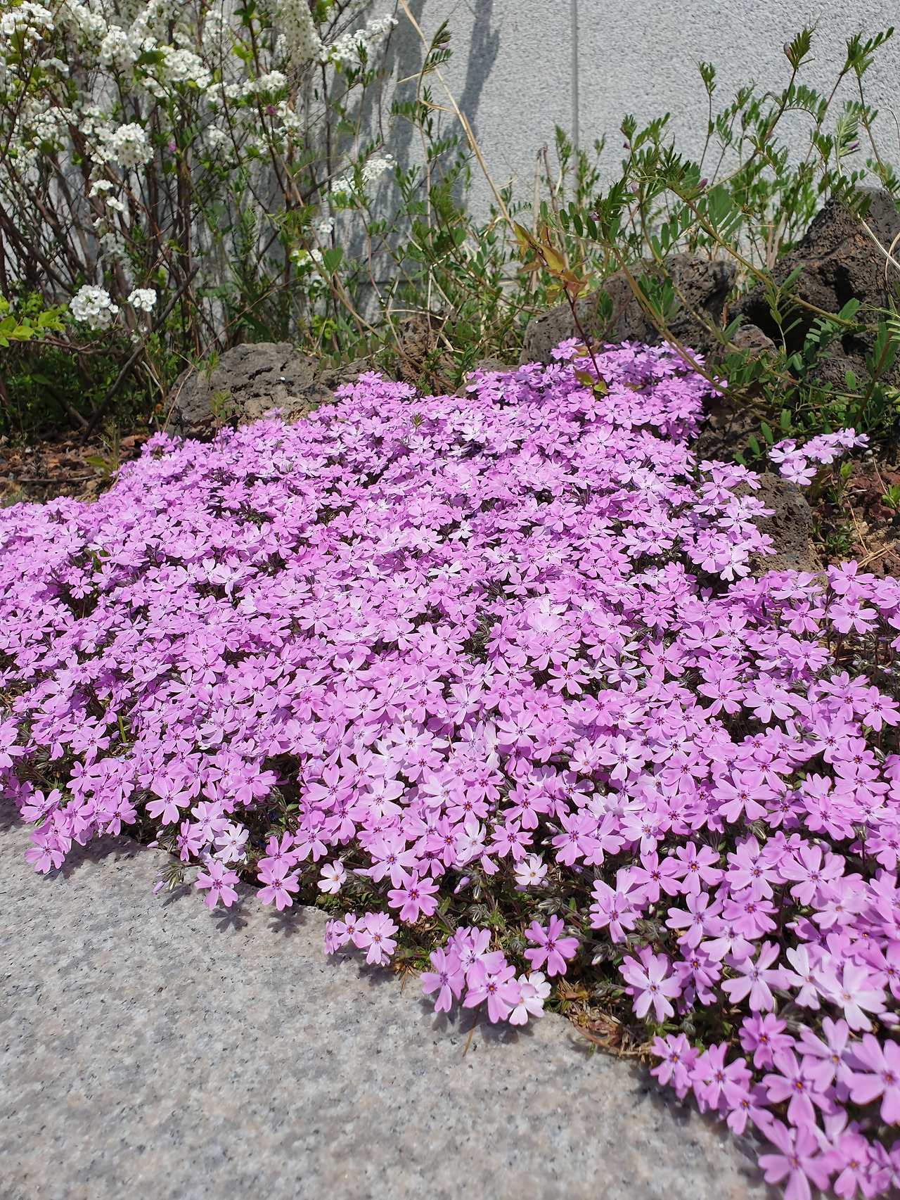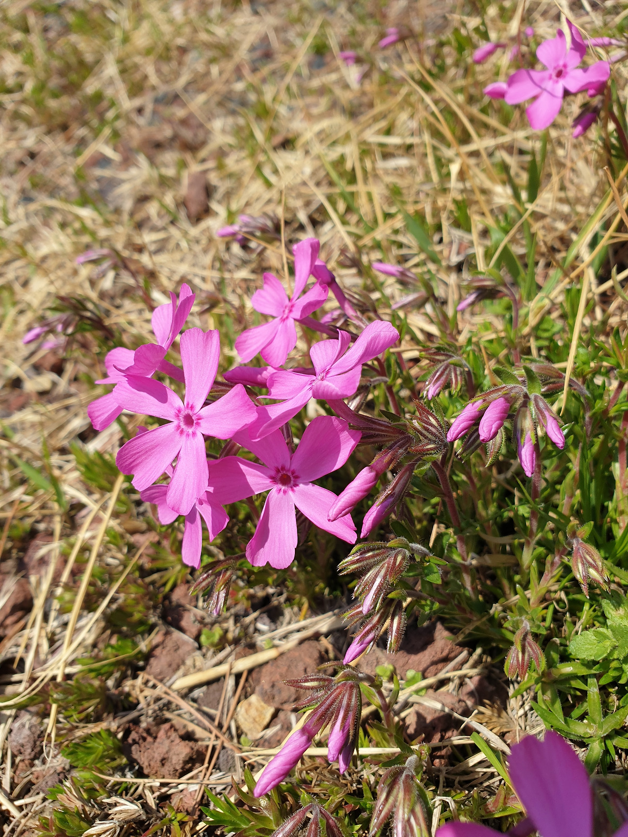 플록스(Phlox)속 식물, 즉 플록스 family 중에 풀협죽도 외에도 우리가 잘 알고 있는 식물이 또 하나가 있는데 바로 '지면패랭이'라고도 부르는 '꽃잔디'(학명 Phlox subulata L.)이다. 꽃 모양을 보니 풀협죽도와 많이 닮았다. 역시 가족이다.