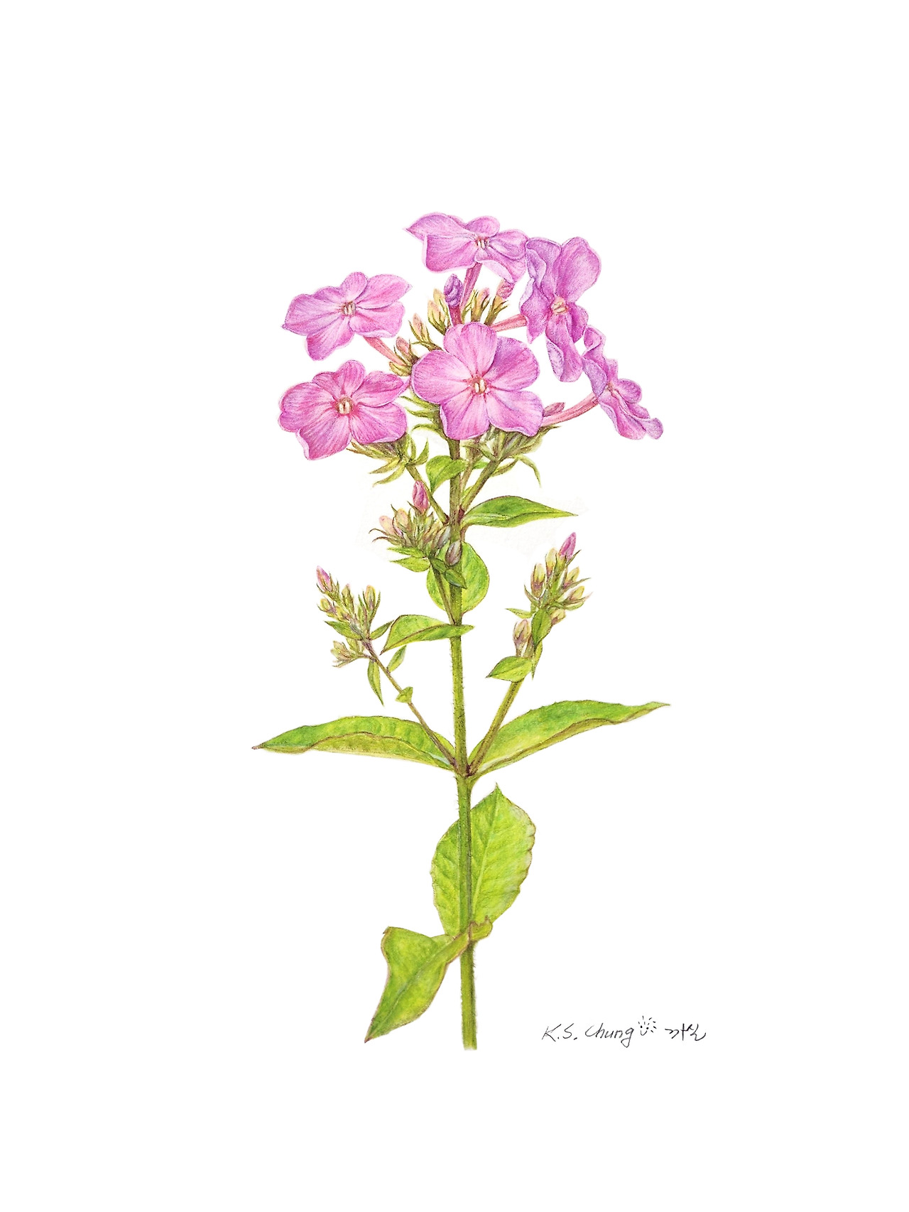 혹시 9월 동네 꽃을 기다렸던 분이 계셨다면 제가 조금 늦었습니다! '플록스'라는 이름은 그리스어 '불꽃'에서 왔다고 합니다. 저를 걱정해주신 분들이 있다면 몸은 비록 허약하지만 열정은 그대로라구요! 소중한 독자님들께 그림으로 제 마음을 전합니다.