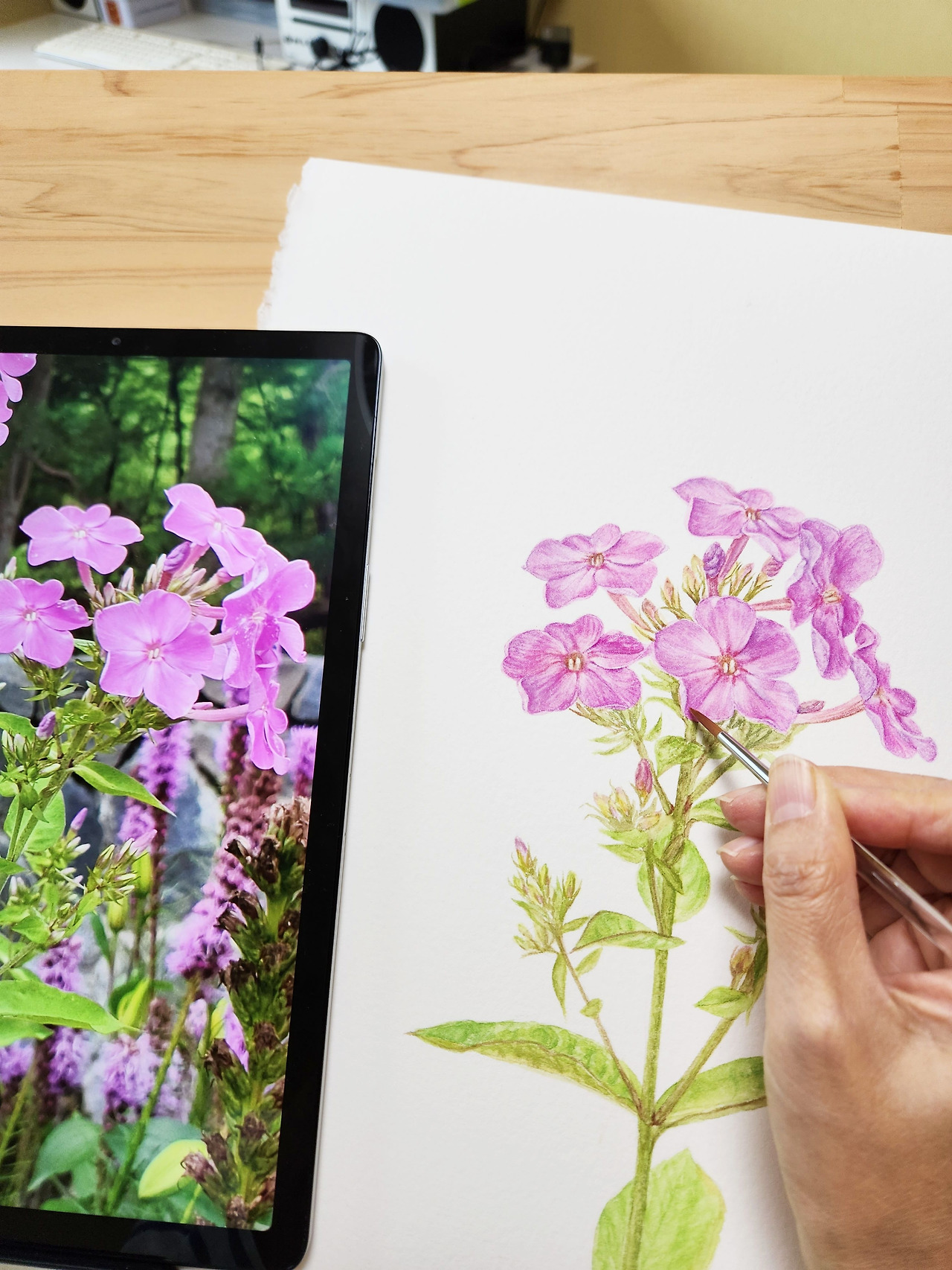 풀협죽도 그리는 모습. 2022.9.22. 채색을 중단하기 직전 상태