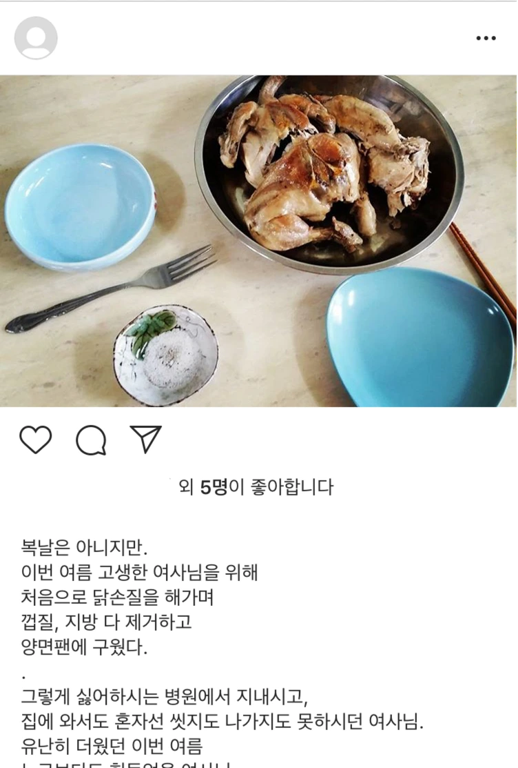 똑같은 반찬일지라도 특별하지 않아도 내가 차려낸 집밥이 내 입으로 넘어갈 때, 엄마가 드시는 모습을 볼 때 왜인지 느낌이 이상했다. 주말 요리사였던 적이 많았는데 엄마가 다치기 전과는 다른 묘한 감정들이 소용돌이쳤다.