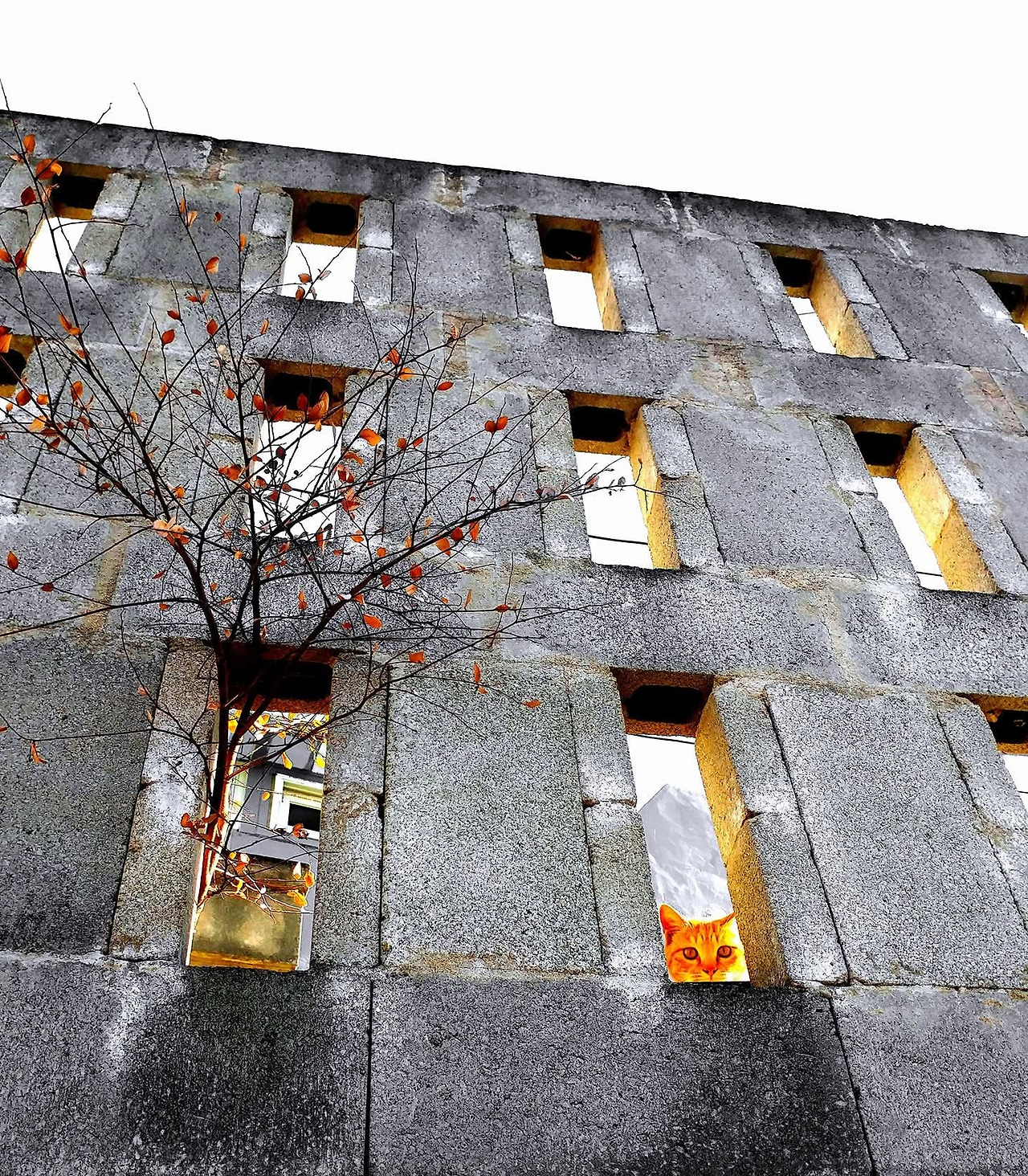의도하지 않은 주제들이 내 카메라 렌즈 안으로 들어오던 그때, 예상치 못한 손님이 찾아왔다. 뚫린 벽면 사이로 고개를 내민 주황빛 고양이 한 마리.
