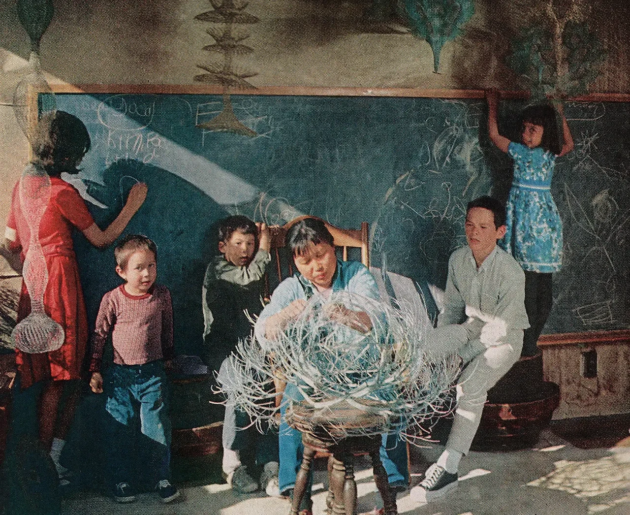 멕시코 바구니 짜기에서 얻은 영감 (1947): 루스 아사와는 1947년 멕시코 여행 중 현지인들이 아연 도금된 철사로 바구니를 짜는 방식에 매료되었습니다. 이는 그녀가 평생을 바친 '철사 조형 기법'의 시초가 되었습니다. (출처: Ruth Asawa 공식 재단)