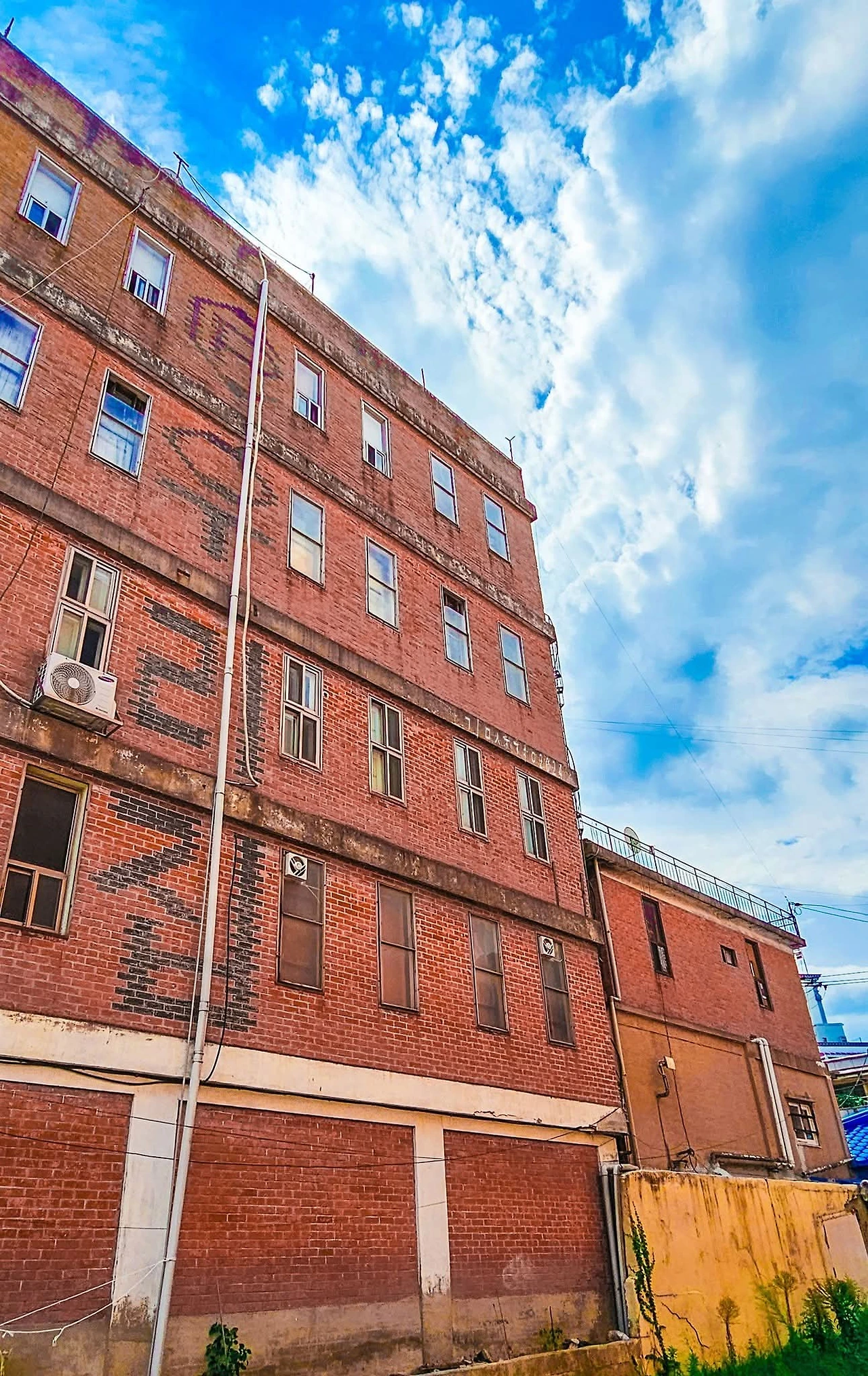 꽤 나이 든 벽돌빛 앞에 다다르자