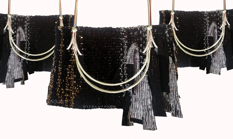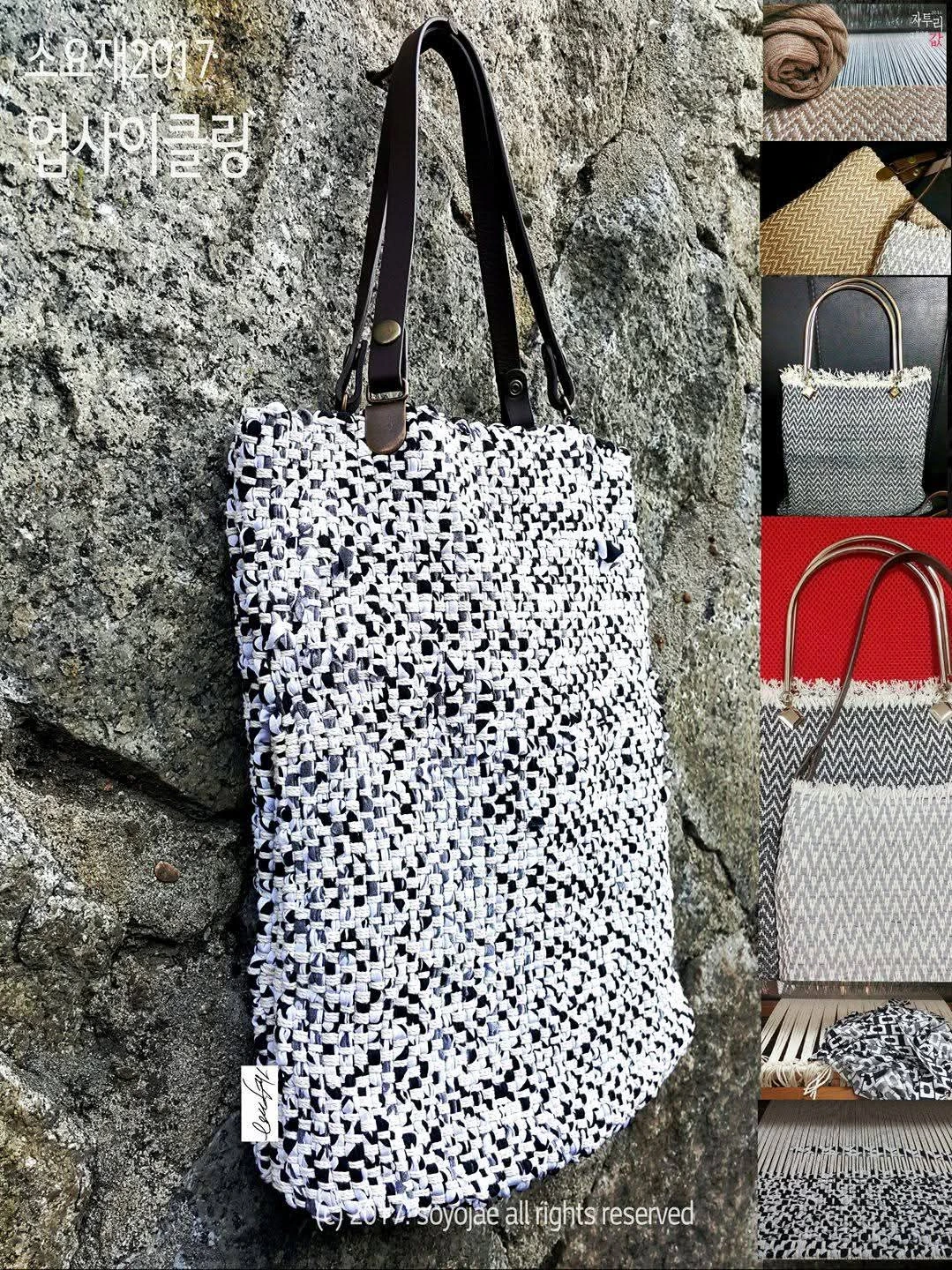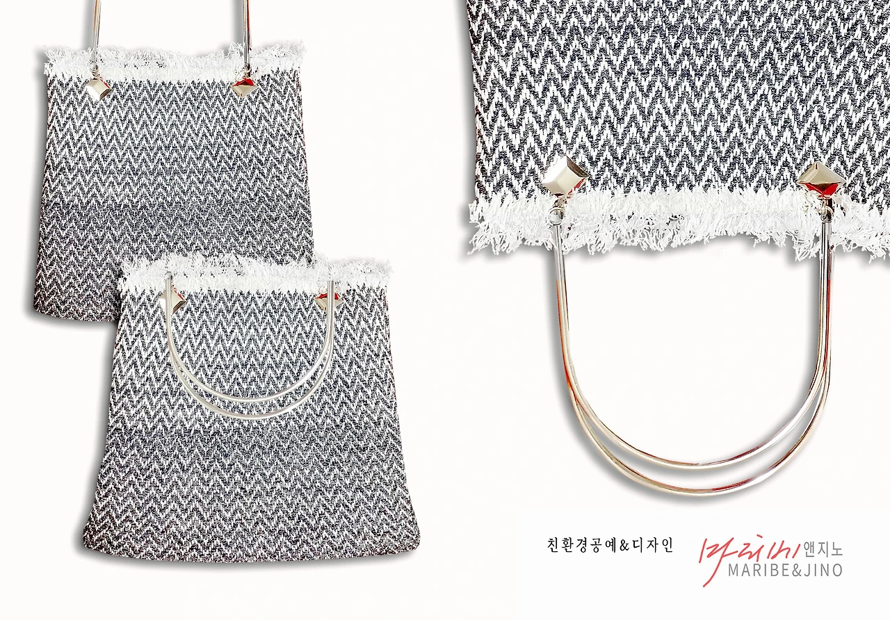 (주)야드인에서 패션 디자인 후 남은 난단(나머지 원단 또는 견본으로 사용한 원단)을 2cm 간격으로 잘라 마루직기에서 평직과 헤링본직으로 직조한 업사이클링 가방 프로젝트 2015~2017