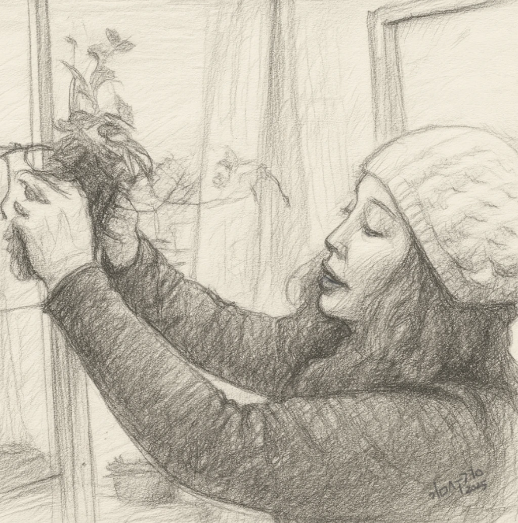 턱 괴고 물끄러미 쳐다본다.