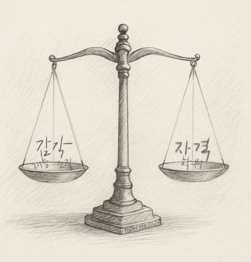 감각과 자격이라는 글자를 담고