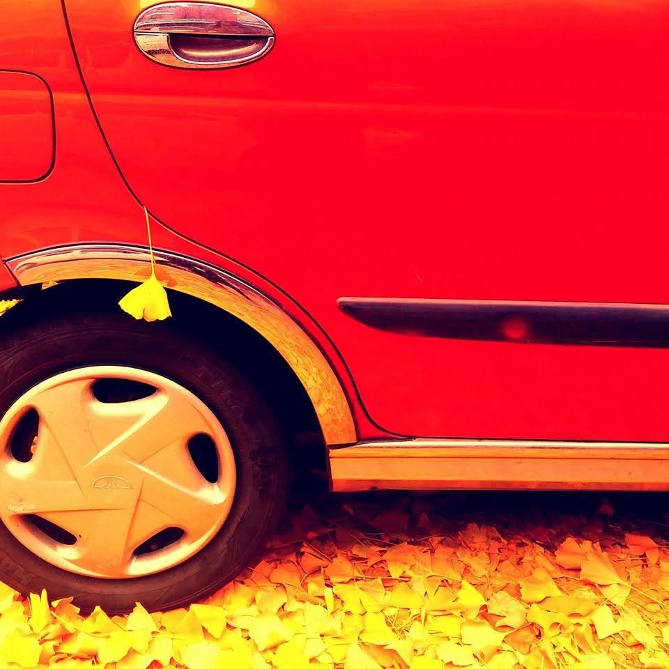 은행나무가 차 문에 끼어있는