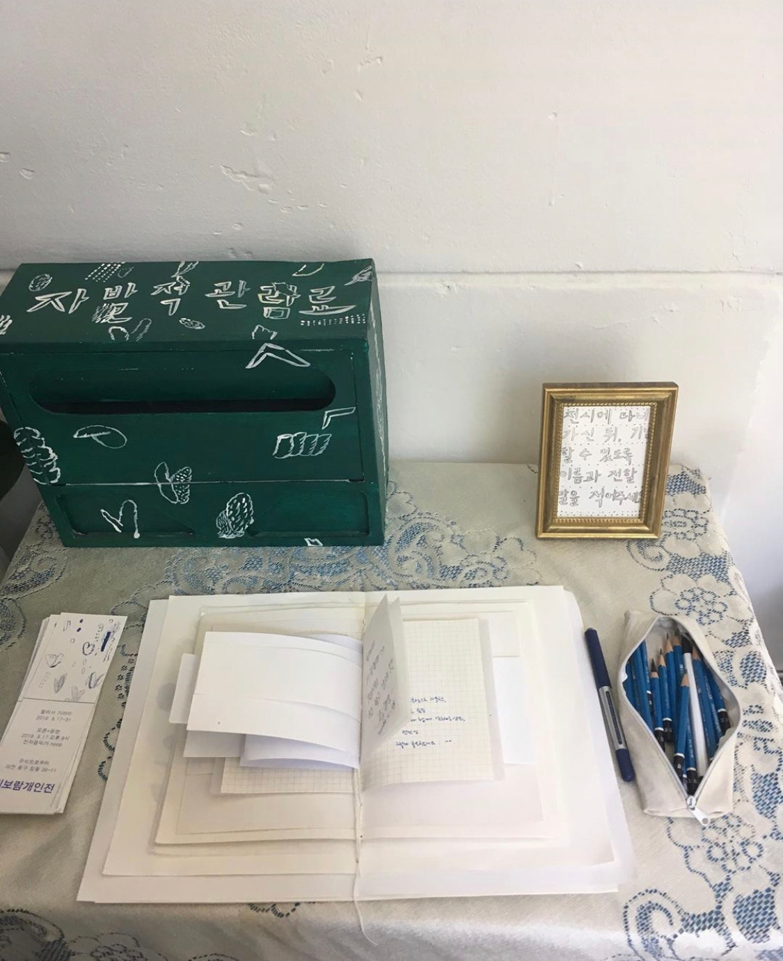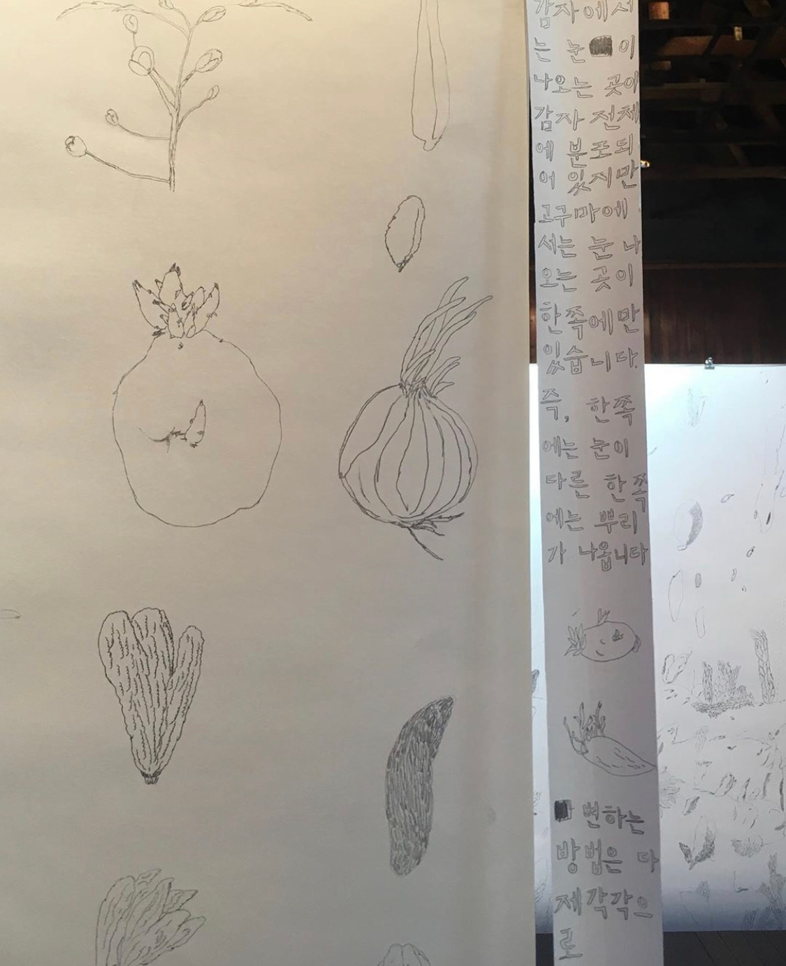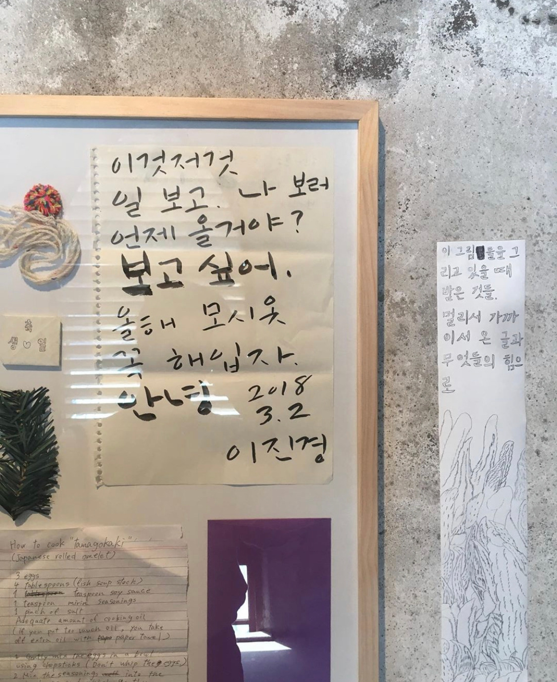 연필로 그려넣은 원화 느낌과 마음에 남는 글들이 많아 좋았던 전시. 계단 위 2층 공간 마지막에 있던, 친구들에게 받은 편지 모음이 넘 귀엽고 재밌었다. 멋진 공간.