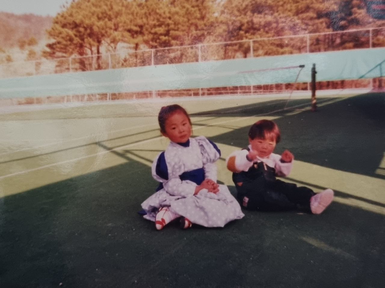 부곡하와이의 동생과 나. 놀러 갈 때 저런 아방가르드한 원피스를 만들어 입혔다니, 엄마...
